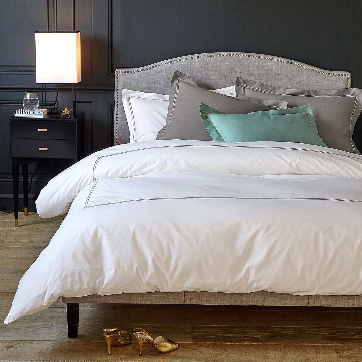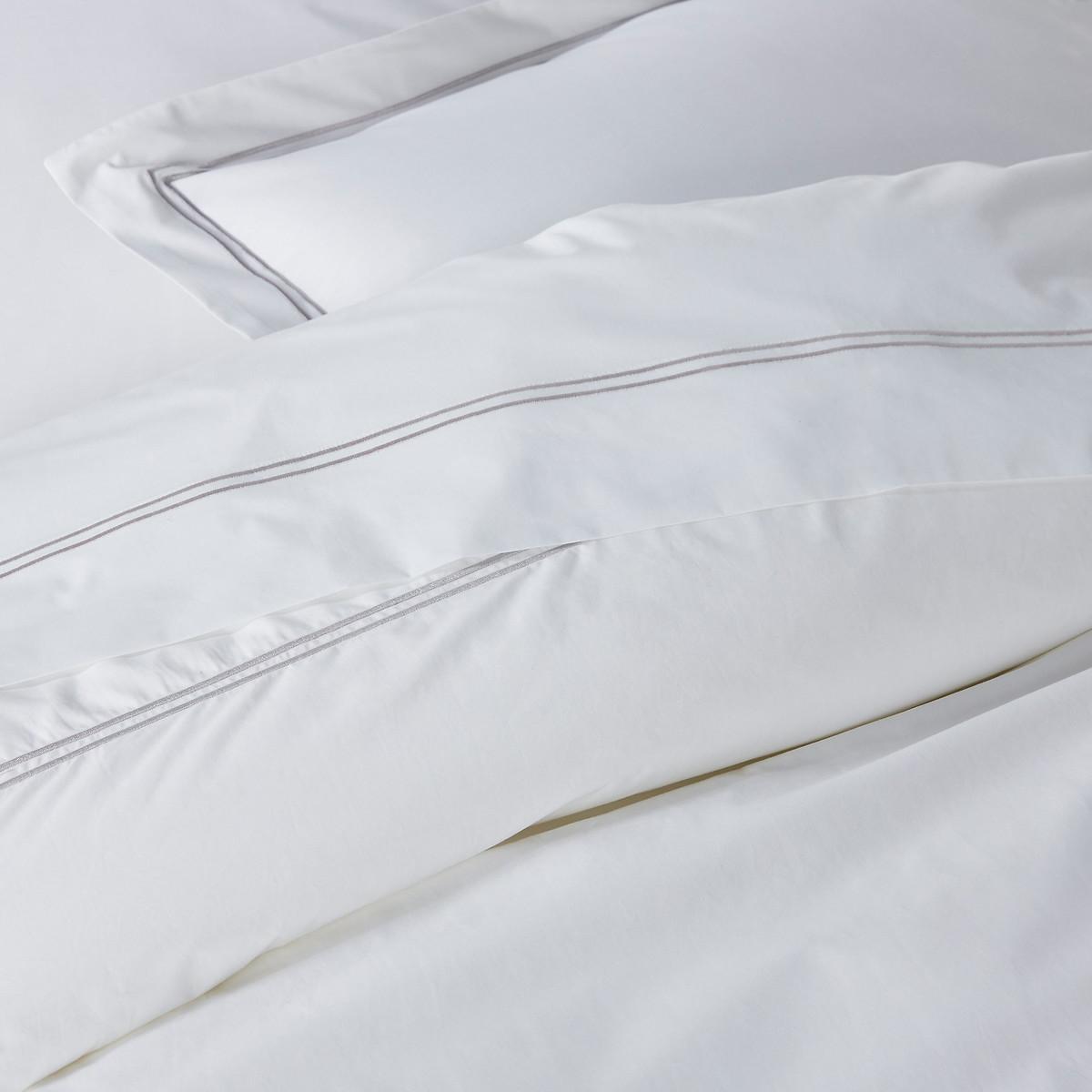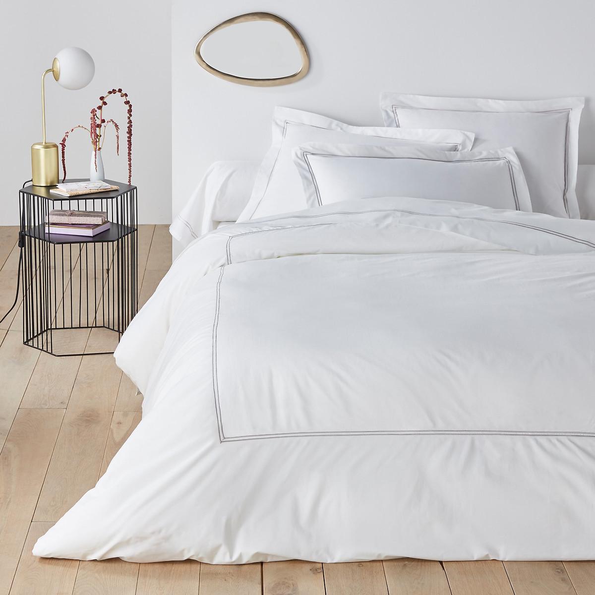 Palace: bedding with a simple chic double bourdon edging that forms a contrasting border. Match this sheet with the rest of the bedding in the range for total coordination. You can also mix and match it with different colours and designs from our other bedding ranges to suit your mood and add your own unique style to the bedroom. The cotton percale offers a pleasant feeling of freshness and lightness. Its tight weave makes it particularly soft for premium comfort. A matte and smooth material that will soften over time. Product Details • 100% cotton • Percale • 200 thread count: The higher the thread count, the higher the quality of the weave • Contrasting border edging • Envelope-style opening. Care Advice • Machine washable at 60°C • By washing your laundry at 40°C instead of 60°C, you limit energy consumption. Dimensions • 140 x 200cm: Single • 200 x 200cm: Double • 240 x 220cm: King • 260 x 240cm: King. Pillowcases sold separately. • OEKO-TEX® Standard 100. Standard 100 certification by OEKO-TEX® tests textile products for harmful substances via an independent, international label.