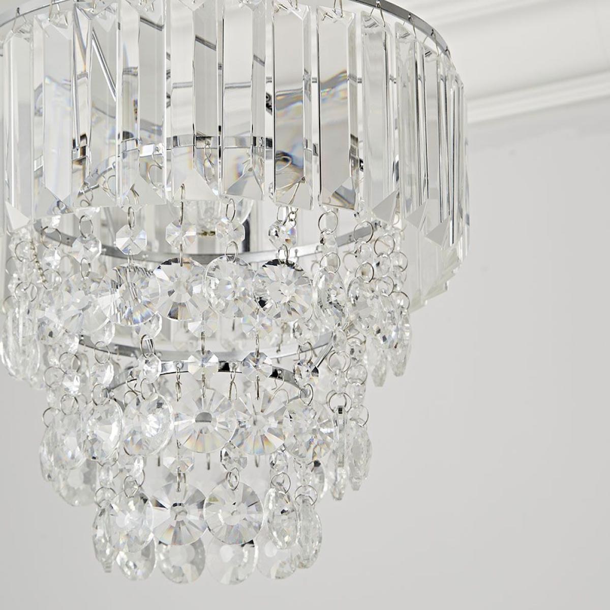 I really like this chandelier for its versatile and contemporary appeal. The chrome finish paired with the crystal elements creates a sleek, reflective look that complements modern, minimalist interiors, as well as more traditional spaces with a touch of glamour. It works well in dining rooms, living areas, or even hallways where you want to add a statement piece without overwhelming the space. For styling, consider pairing it with neutral or monochrome colour schemes to let the chandelier be the focal point, and keep the surrounding decor simple to enhance its reflective qualities. It's also a practical choice because the shape and size make it suitable for various ceiling heights, making it a flexible addition for a range of interior styles.