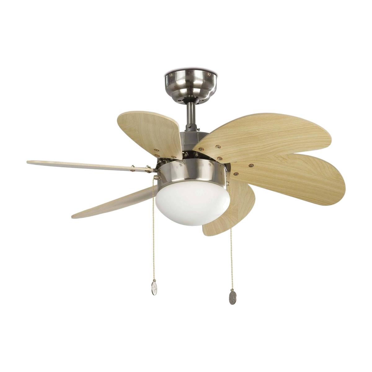 Palao 1 Light Small Ceiling Fan Matt Nickel, Maple with Light, E14 - Matt Nickel