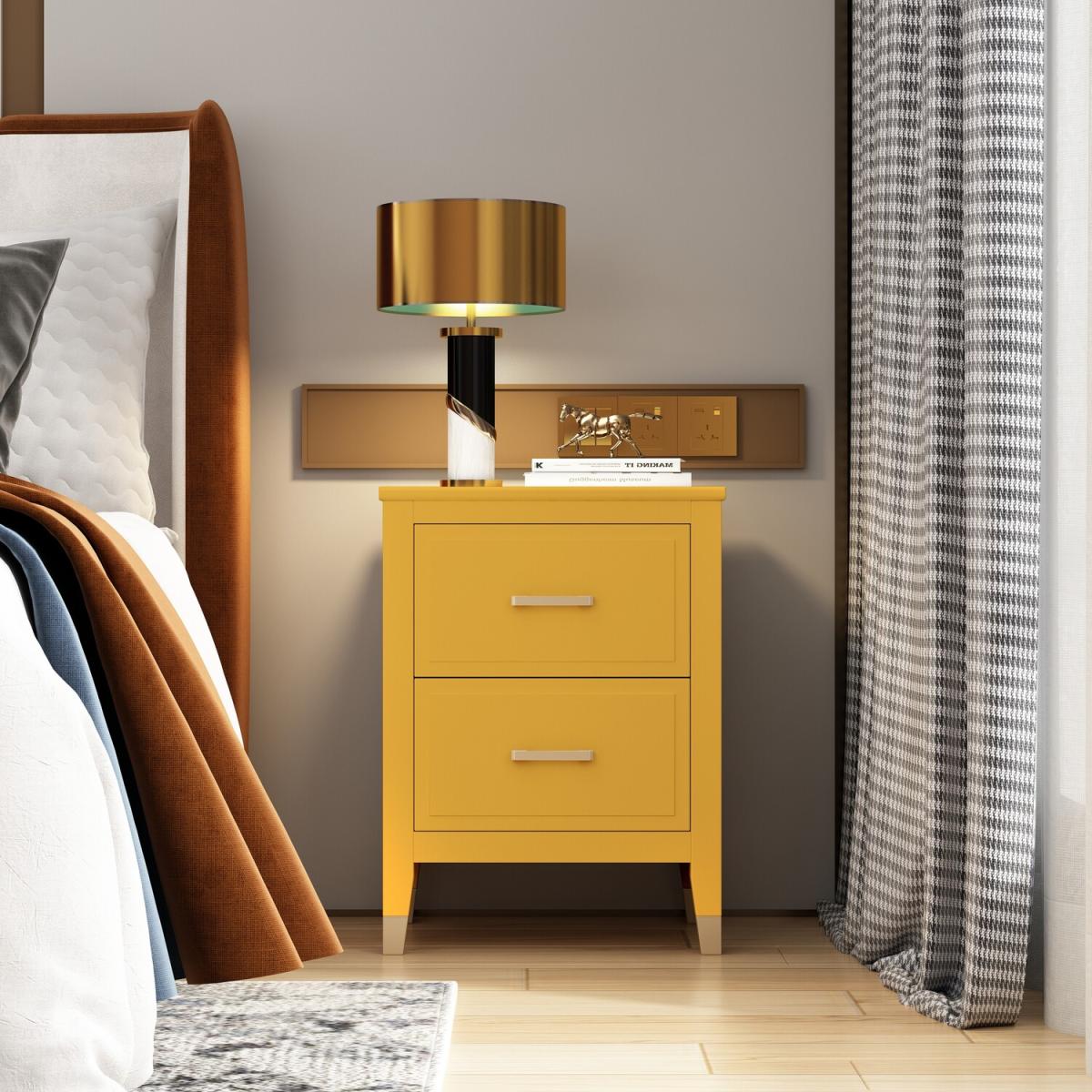 I’m a big fan of this mustard bedside table for the way it injects warmth and personality without dominating the room. Its clean lines and discreet metal handles mean it sits equally well in a mid-century modern scheme or alongside more contemporary, minimalist furniture. To style it, keep the surface clutter-free: a slim-lined lamp, a couple of low-profile books and perhaps a small planter or ceramic tray for your daily bits. The mustard finish works brilliantly against deep blues or soft greys, and if you’re feeling bolder you could layer a graphic print or two on the wall above to pick up that pop of colour.