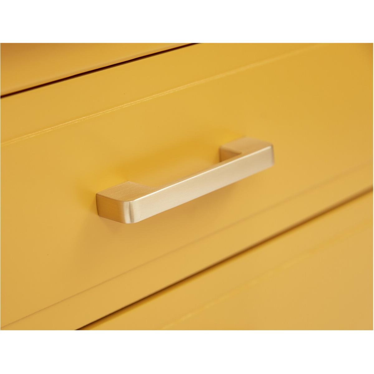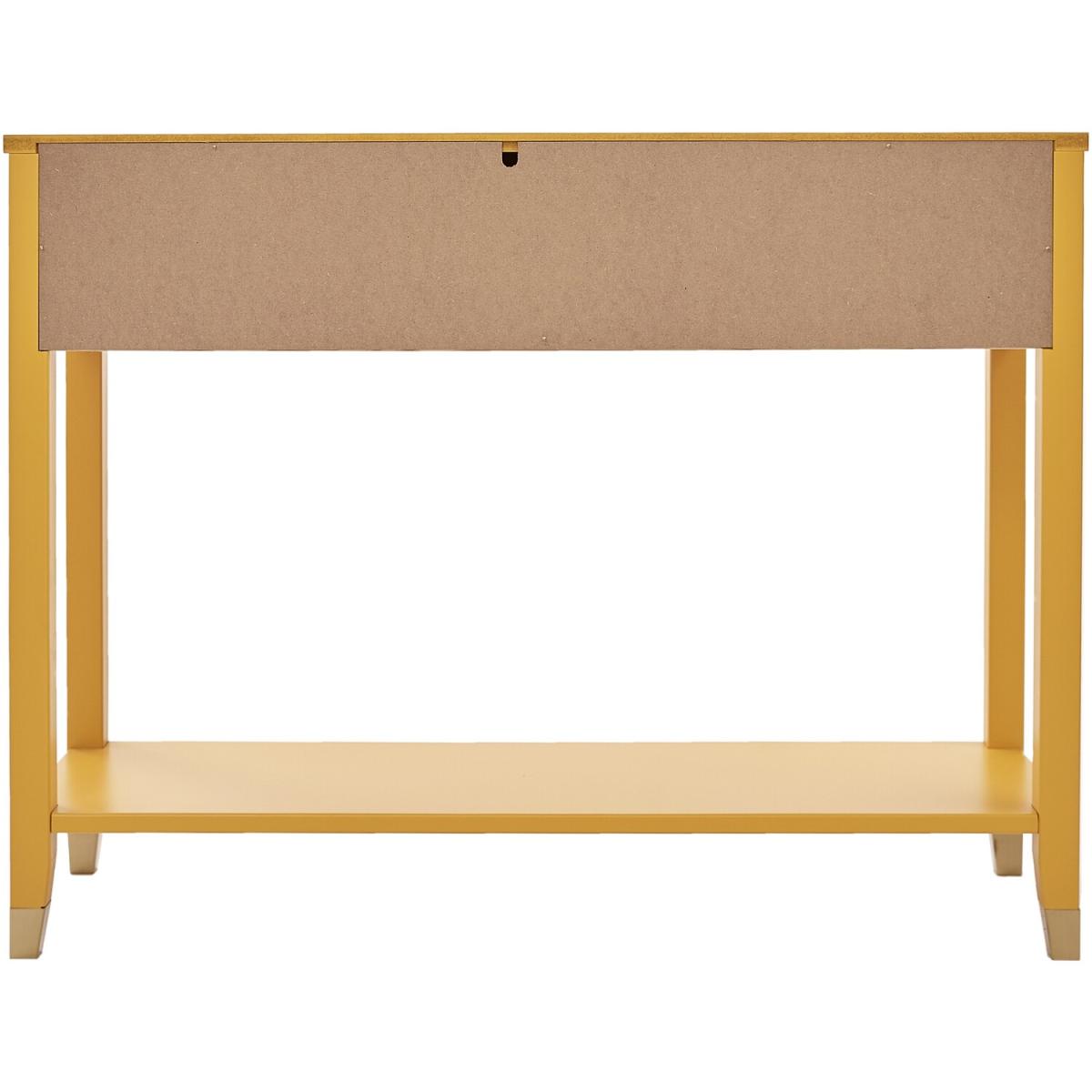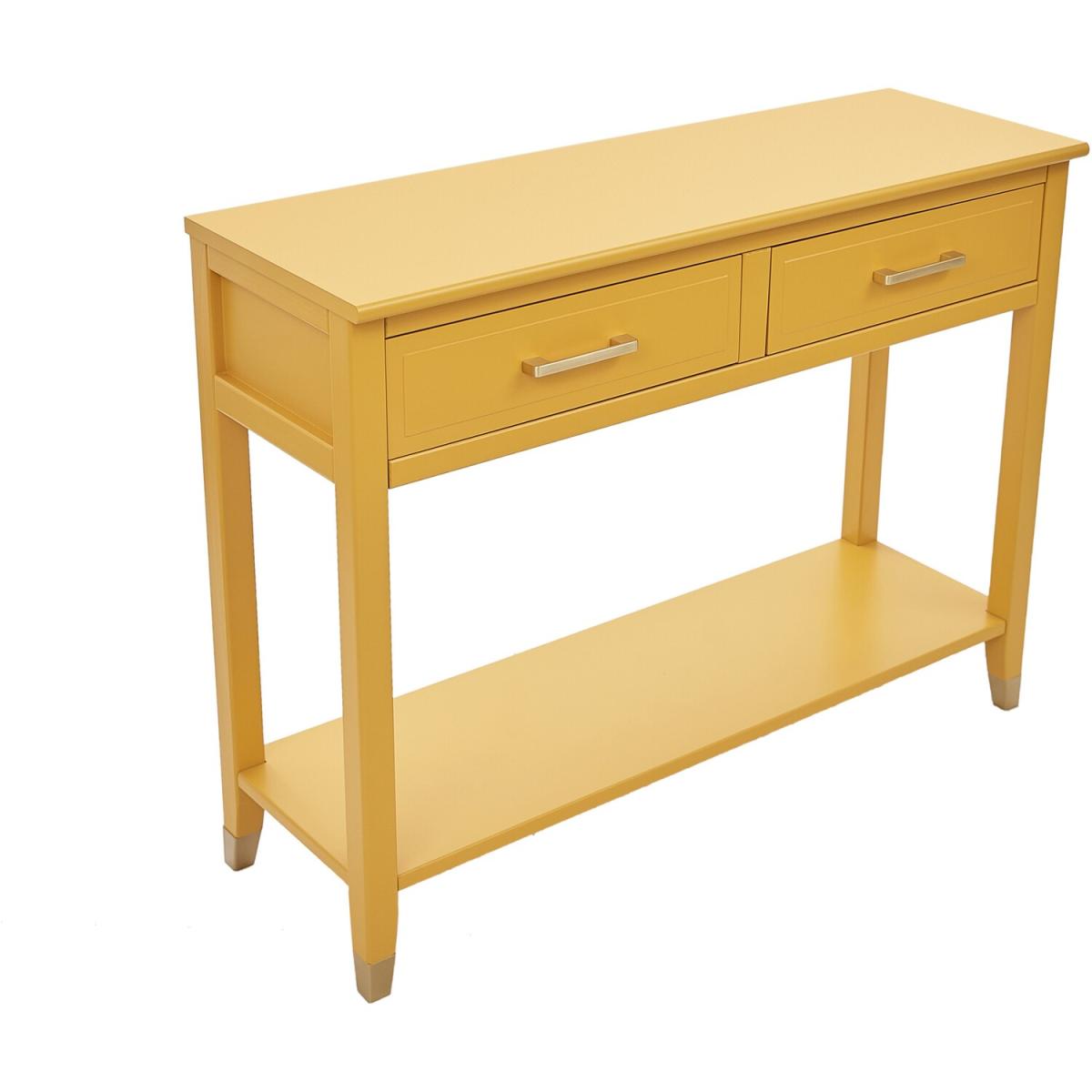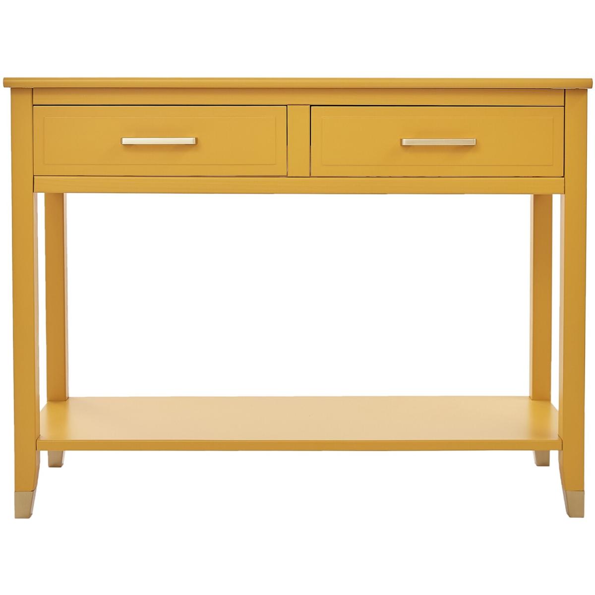 I love how this mustard console instantly lifts a neutral hallway or living room without overwhelming the space. Its slim profile and lower shelf make it ideal for narrow areas, while the two drawers keep keys and small bits tucked away. Styling-wise, pair it with a round mirror and a simple table lamp to balance the bright hue, then add a couple of ceramic vases or a stack of hardcover books on one side. The colour works particularly well in mid-century and contemporary schemes, but it can also bring warmth and personality to minimalist or Scandi-style interiors.