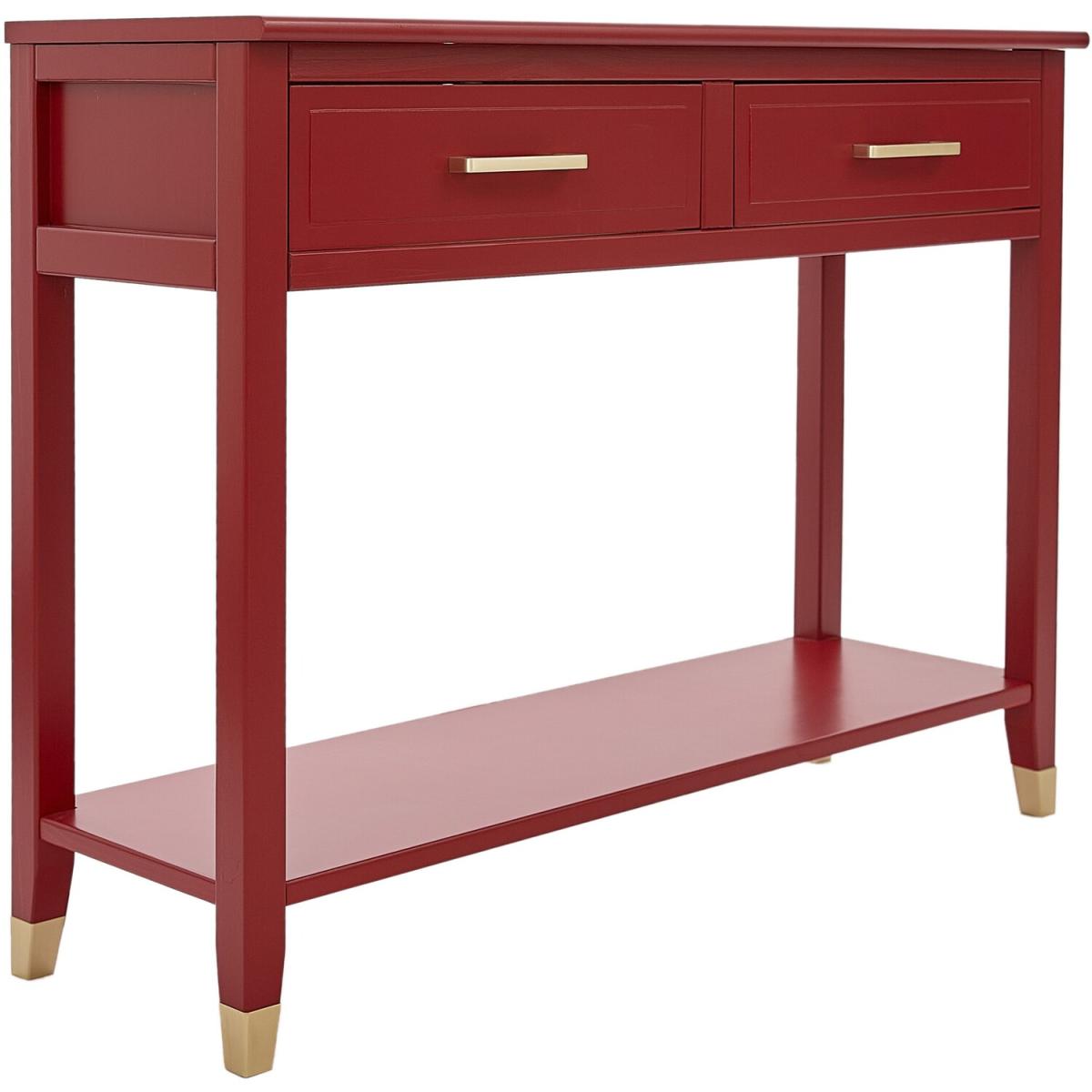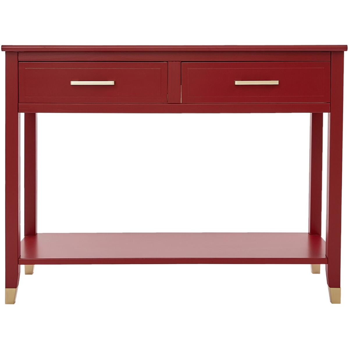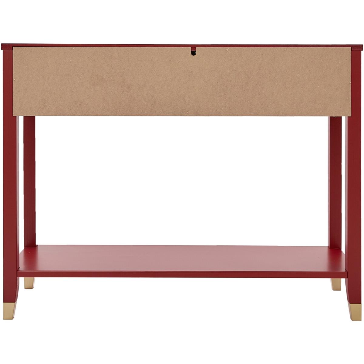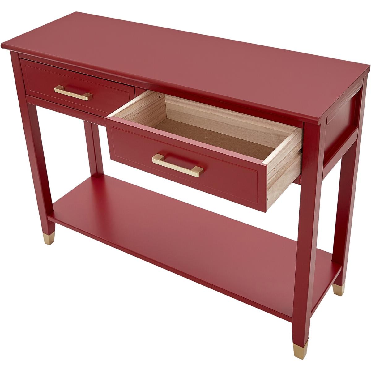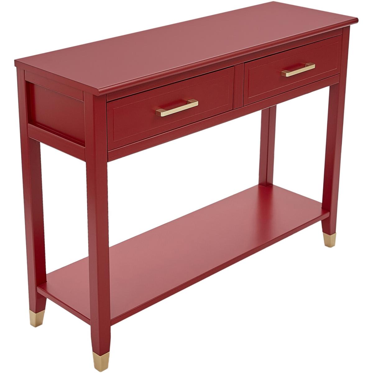 I’m a fan of this red console’s clean lines and warm brass detailing - it instantly injects energy without overwhelming a space. It sits equally well in a pared-back hallway or as an accent in a modern living room, especially against pale walls or within a neutral scheme where the colour can really pop. For styling, keep the top surface uncluttered: a slim tray for keys or post, a low vase of foliage and one framed photo or piece of art resting against the wall. You can use the drawer for mittens or chargers, and on the lower shelf corral a woven basket for scarves or store extra throws in a sleek box.