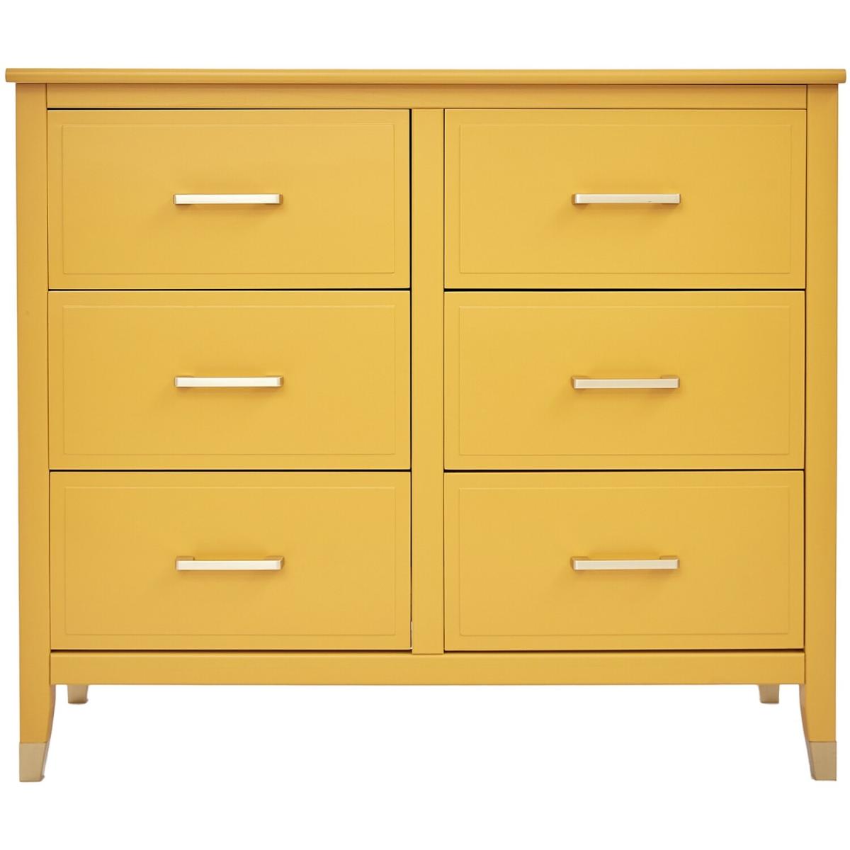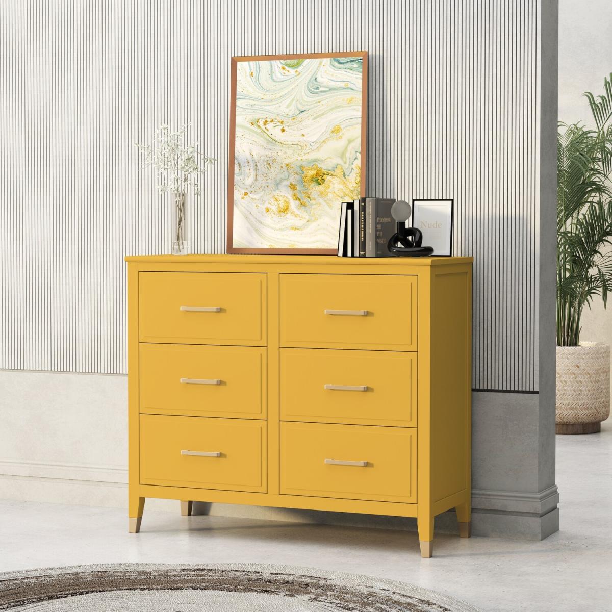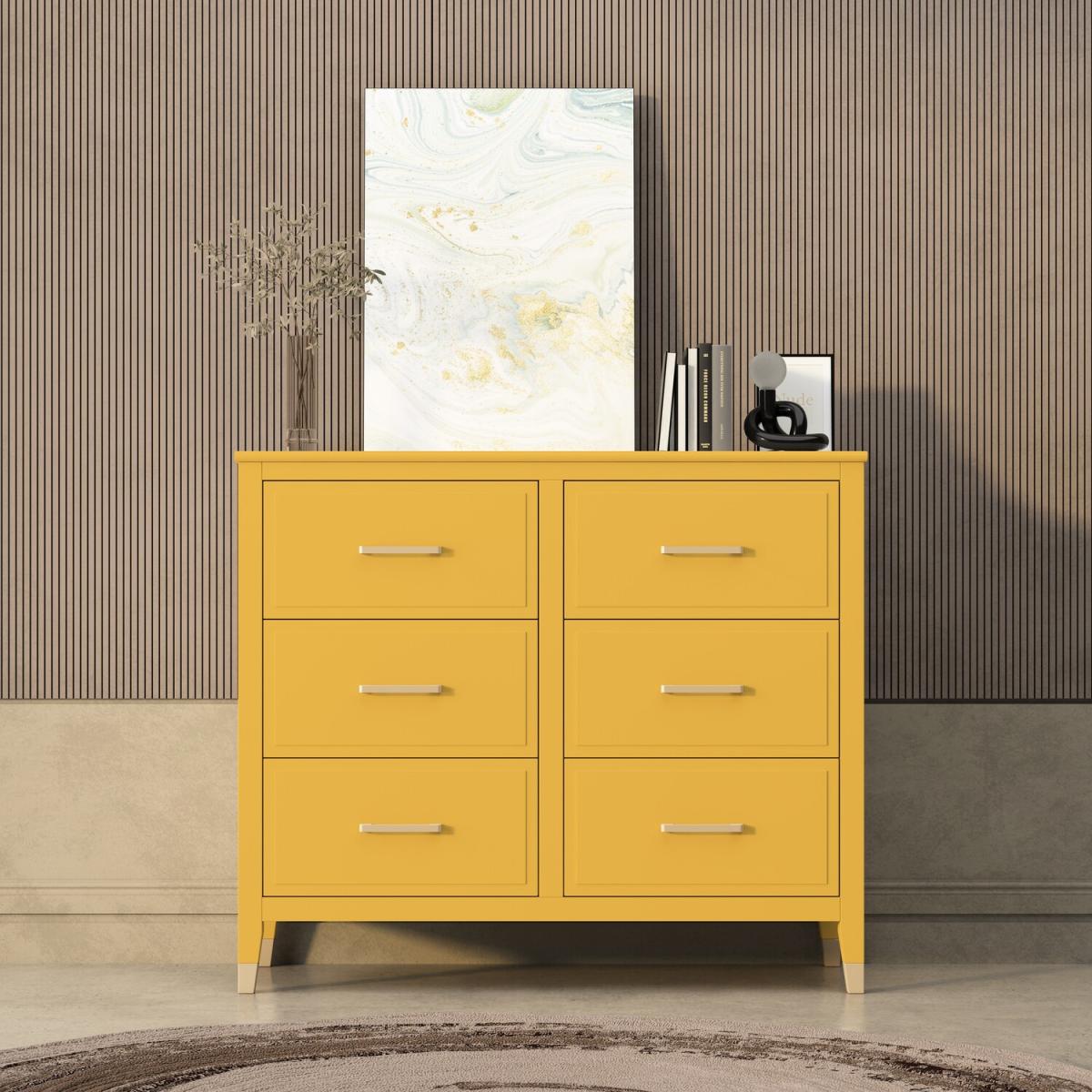 I’m a fan of this mustard chest for its bold yet versatile hue and clean-lined profile - it works equally well in a Scandi-inspired bedroom or as an accent piece in a contemporary hallway. The six drawers give plenty of practical storage without feeling bulky, and the slim metal handles add just the right hint of shine. For styling, keep surfaces uncluttered: a round mirror or slim wall art above, a small plant or vase at one end and a neat stack of coffee-table books or a decorative tray at the other. Pair with soft neutrals, deep teal or charcoal accents to balance the warmth of the mustard tone.