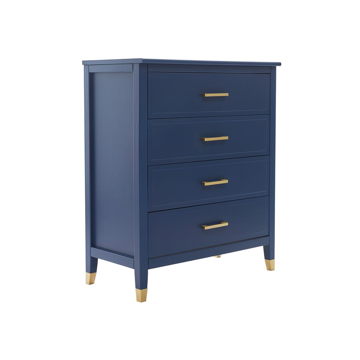 I love this navy chest of drawers for its sleek, contemporary look that adds a touch of sophistication to any space. The rich navy finish is versatile enough to work in both modern and transitional interiors, pairing beautifully with neutral tones or bold colour accents. Practical styling tips include using the top surface for decorative items like trays or lamps, while the drawers are perfect for organising clothing or accessories in bedrooms or dressing areas. Its compact size makes it ideal for smaller rooms, and the gold handles add a subtle luxe detail that elevates its overall appeal. This piece works well in bedrooms, hallways, or even living rooms where a functional yet stylish storage solution is needed.