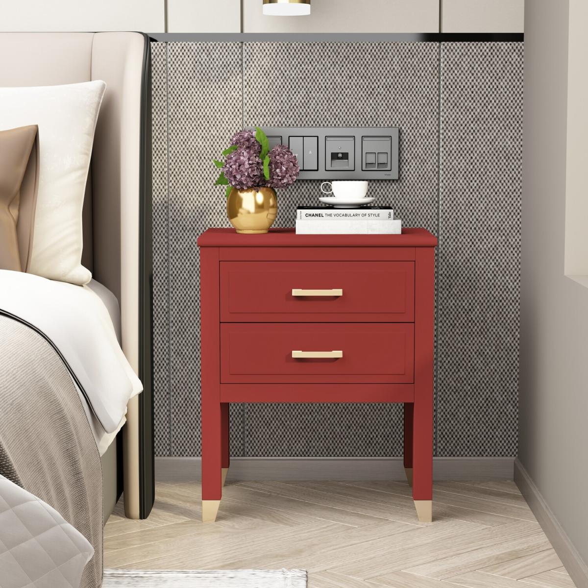 I’m a big fan of this red 2-drawer bedside for adding a confident splash of colour without overpowering the room. The two roomy drawers hide clutter, while the brass-tone handles give a modern, slightly vintage edge. It sits equally well in a contemporary scheme, a mid-century inspired space or even a shabby-chic setting. For styling, keep the top simple - perhaps a pared-back lamp, a small plant and a neat stack of books. It looks especially good against pale walls or alongside neutral bedding to let the red really sing.