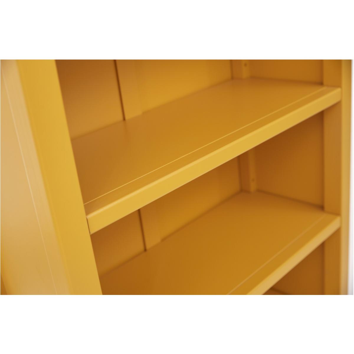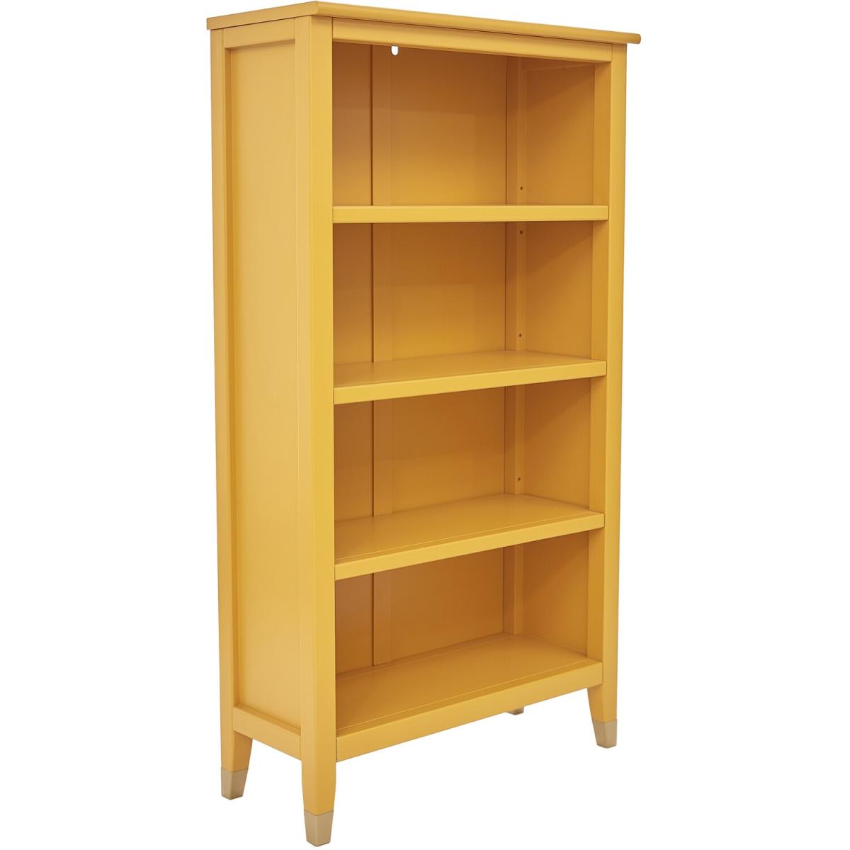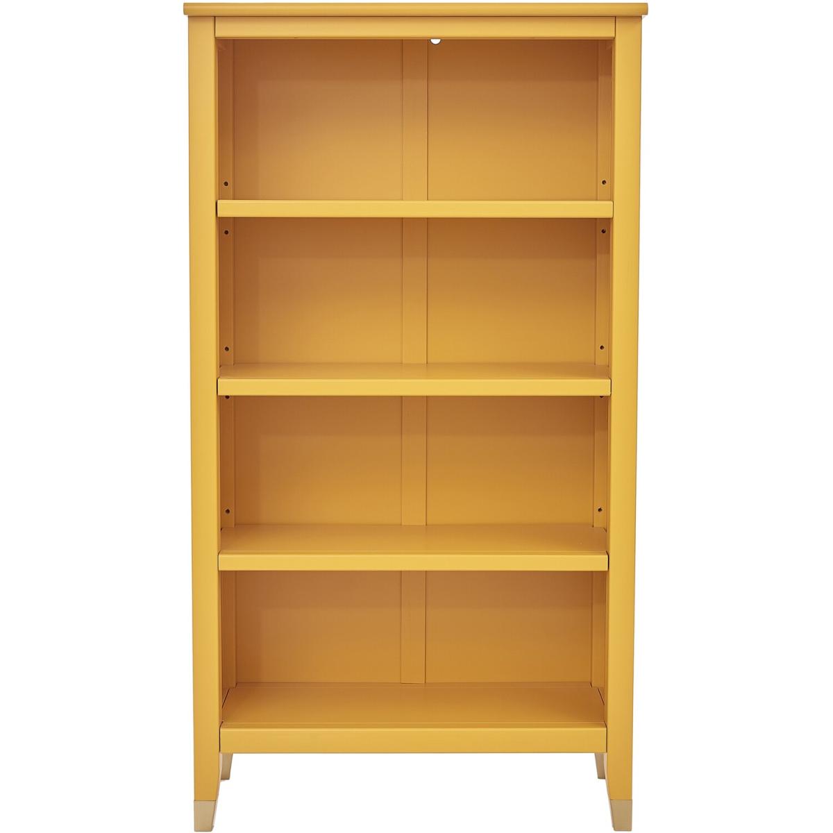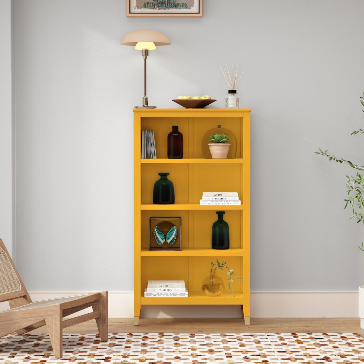 I love this slim yellow bookcase for adding a pop of colour and practicality to any room. Its narrow profile makes it ideal for smaller spaces or for use as a statement piece in living rooms, bedrooms, or home offices. The vibrant mustard hue works well in both contemporary and eclectic interiors, providing a cheerful focal point. For styling, I recommend pairing it with neutral-toned accessories and plants to soften the bold colour, or layering with decorative objects and books for a curated look. It's perfect for displaying a mix of everyday essentials and decorative pieces without overwhelming the space, making it both functional and visually appealing.