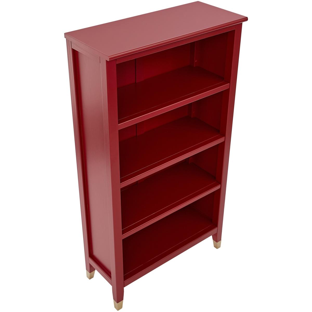 I love this red bookcase for its bold colour punch, which makes it a versatile statement piece. It works really well in contemporary spaces that need a splash of colour or in eclectic interiors where it can serve as a focal point. Practical styling tips include balancing the shelves with a mix of books, small decorative objects, and greenery to keep it looking curated yet functional. Its narrow design makes it ideal for smaller rooms or tight corners, giving you vertical storage without overwhelming the space. I’d suggest pairing it with neutral or muted tones in the rest of the room to let it truly stand out, or style it with other colour pops for a playful effect.