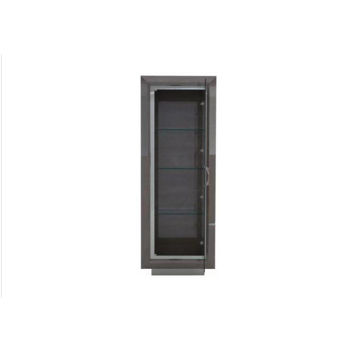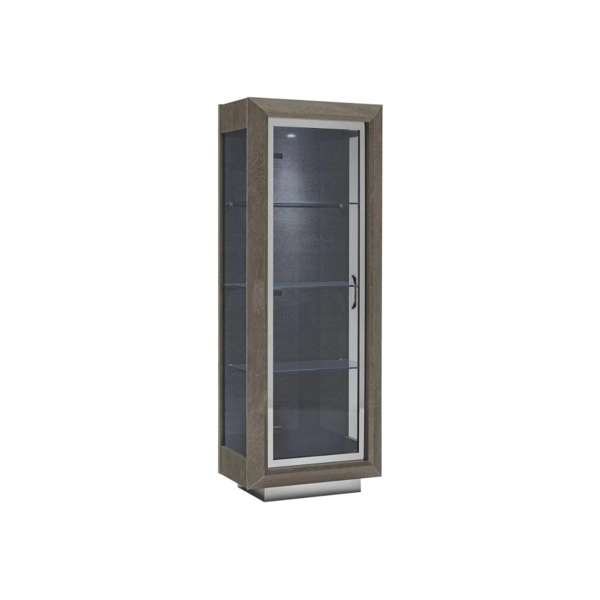Delivery 7-14 Days Colour Silver BirchThanks to its high-gloss lacquered finish and smoked glass doors, this contemporary display cabinet is almost as eye-catching as anything you might arrange on its shelves. Made in Italy. Why you'll love it High-gloss curio cabinet makes a striking statement. Glam and gorgeous Italian furniture. Lacquered finish has a beautiful woodgrain effect. Bevelled edges with inset gunmetal grey metallic detail. Tinted glass doors and side panels. Powder-coated stainless steel plinth. Built in LED spotlights. Metal door handle. In a choice of sophisticated woodgrain-effect colours. Also available in perfectly smooth and sleek glossy white. Beautifully made in Italy. This curio cabinet is part of the Palazzo range. What you need to know 3 adjustable glass shelves. 6 mm tempered glass doors and side panels. Cupboard door hinges are adjustable. The lacquered finish is 4 layers deep, the result of a unique high-tech process. Please note that the lacquered finish may show surface scratches under certain lighting. Warning! This item should be fixed to a wall using the anti-tip wall-hanging kit provided. Be sure to use the correct wall fixings suitable for the walls in your home. Failure to do so could result in injury if this unit tips over unexpectedly or is knocked, pulled down or otherwise displaced. Please note:Our delivery team will not be able to attach this unit to your wall. It will be unwrapped and left for you to install.