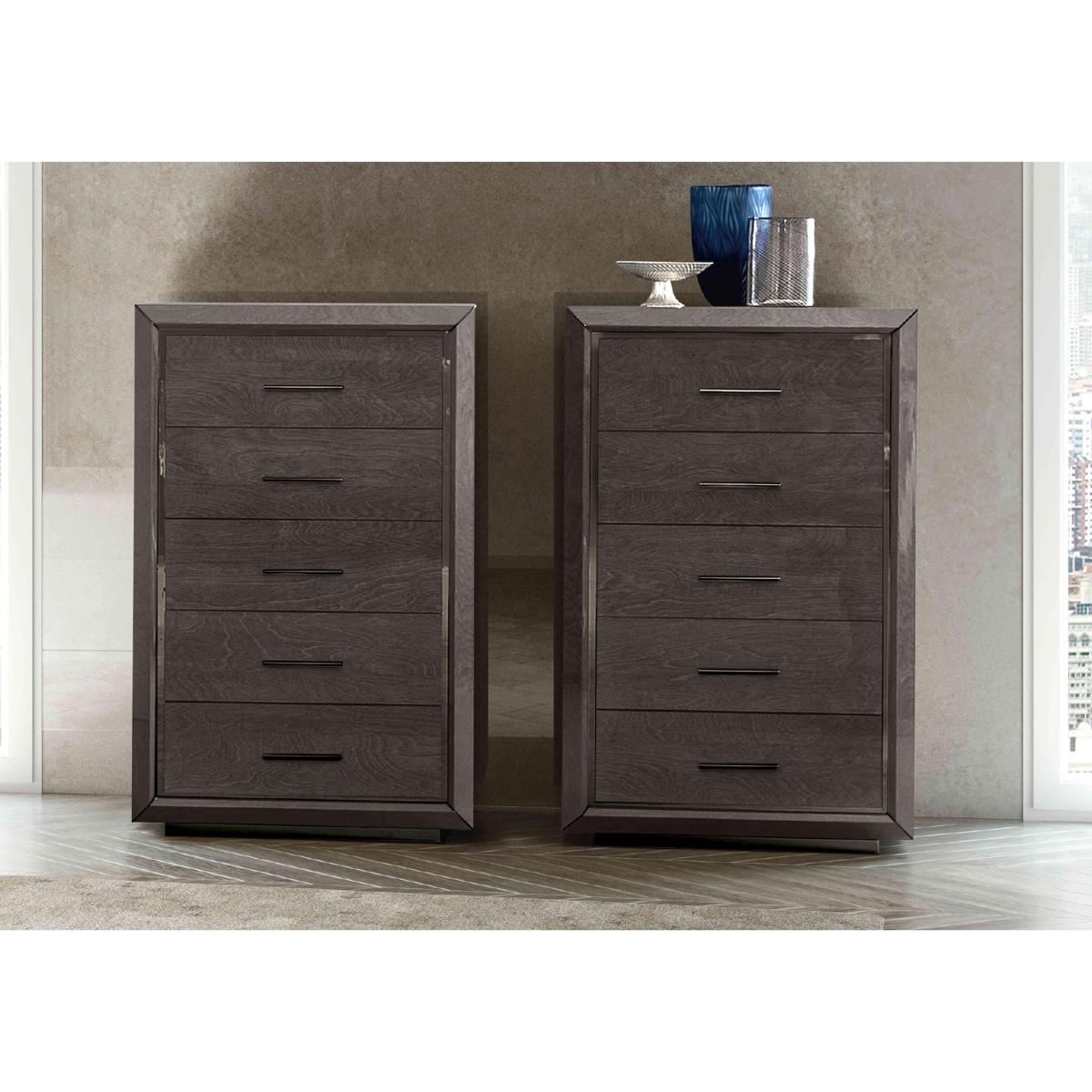 Modern glam style. Gorgeous high-gloss lacquered surfaces. Elegant contemporary details. Meet our Italian bedroom furniture collection Palazzo from Italian brand Modum. This stunning range is as extensive as it is striking. You'll find chests of drawers in all sizes, spacious sliding and hinged wardrobes, and a truly incredible bed frame with a choice of high-gloss or cushioned headboard. Finished in silver birch with a subtle woodgrain effect, pieces showcase bevelled edges and gunmetal grey metallic accents. And everything is made in Italy for that effortless blend of chic style and quality craftsmanship. For more of this fabulous glam look, be sure to discover the Palazzo dining furniture collection. Combining standout glam looks with practical space-saving design, this tall and narrow chest of drawers brings home useful storage and gorgeous Italian furniture style. Why you'll love it. The ultimate in gorgeous Italian furniture for bedrooms. Modern glam style. High-gloss lacquered chest of drawers is striking and stylish. Stunning silver birch finish with a subtle woodgrain effect. Chest of drawers has bevelled edges with inset gunmetal grey metallic detail. Chrome-effect plinth. Soft-closing drawers with metal handles. Beautifully made in Italy. What you need to know. 5 drawers. The lacquered finish is 4 layers deep, the result of a unique high-tech process. Please note that the lacquered finish may show surface scratches under certain lighting. This chest of drawers may take time to settle into a carpeted floor. Avoid overfilling or overweighting individual drawers. Part of the extensive Italian-made Palazzo bedroom furniture collection. Palazzo is also available as a living and dining room collection. Warning!. This item should be fixed to a wall using the anti-tip wall-hanging kit provided. Be sure to use the correct wall fixings suitable for the walls in your home. Failure to do so could result in injury if this unit tips over unexpectedly or is knocked, pulled down or otherwise displaced. Please note. Our delivery team will not be able to attach this unit to your wall. It will be unwrapped and left for you to install.