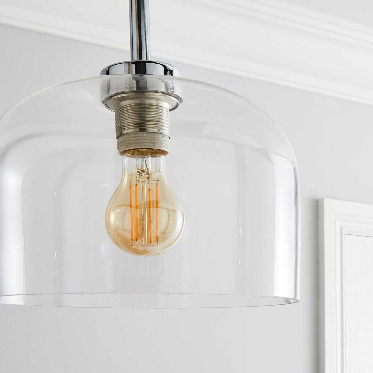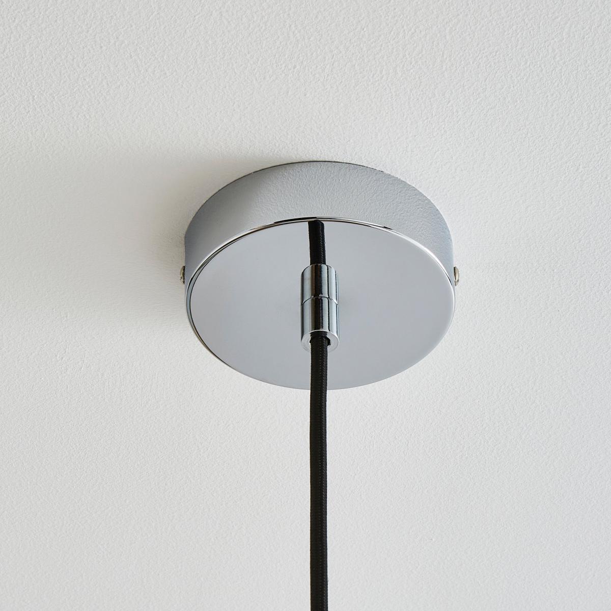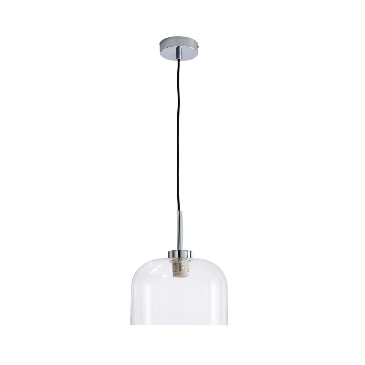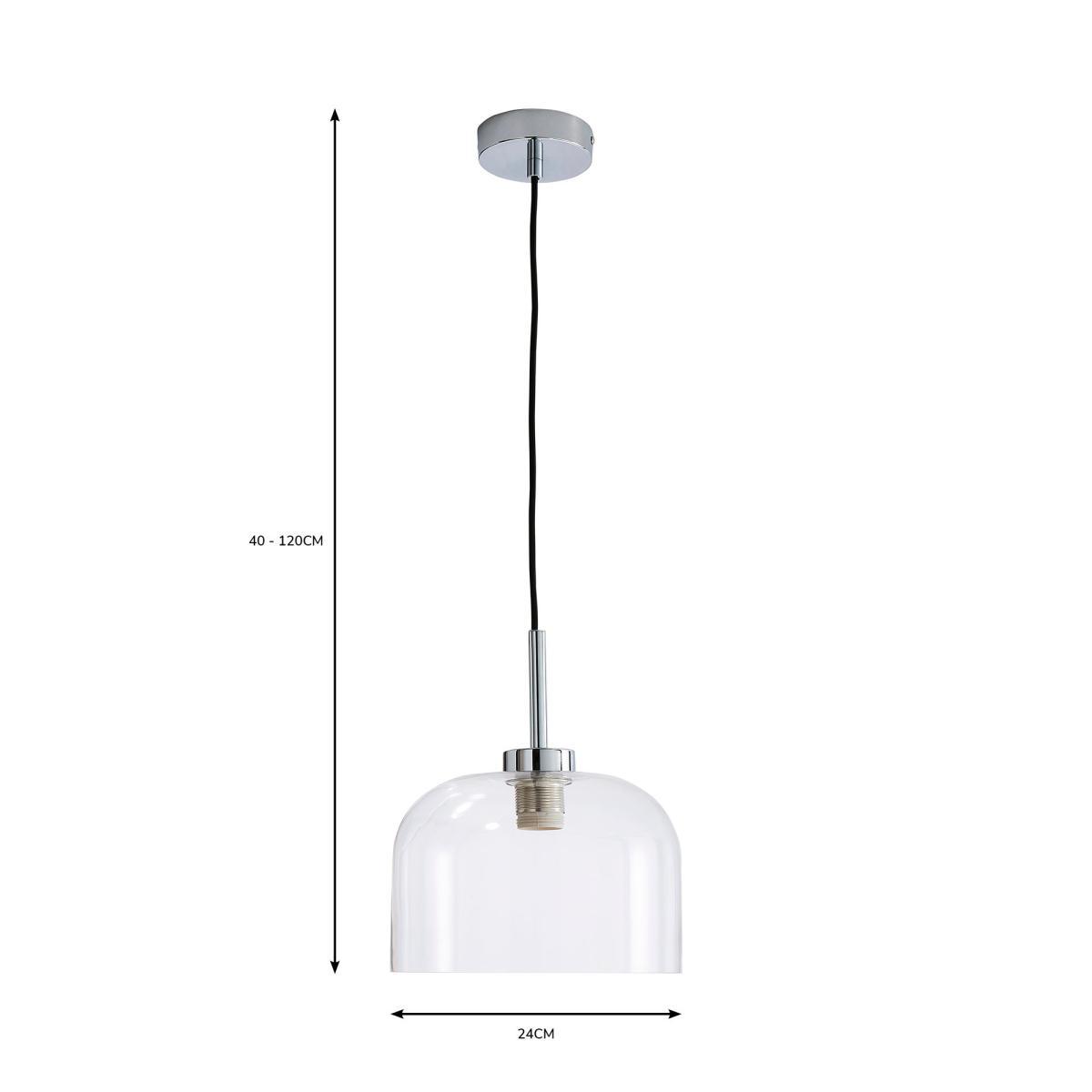 The Palazzo Pendant Ceiling Fitting is perfect for adding a modern, decorative touch to any space. This stunning light features a chrome finish base with chrome details, a chic clear dome glass shade paired with a complementing height adjustable black fabric flex. This piece is dimmable compatible, making it both an attractive and practical light fitting.