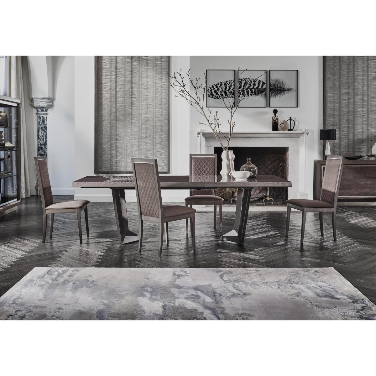 With its flawless high-gloss finish and superb craftsmanship, our 100% made in Italy Palazzo dining range from Italian brand Modum is the very essence of modern Italian furniture style. From dining sets to sideboards and occasional tables to curio cabinets, the collection’s gorgeous lacquered surfaces are enhanced with a subtle woodgrain pattern, bevelled edges and gunmetal grey metallic accents. Effortless contemporary style is matched by practical design choices like push to open drawers and built-in LED cabinet lighting. At the heart of the collection is the Palazzo extending dining table which includes two extension leaves and can accommodate two more for an absolutely stunning dining table that’s a full four metres in length. Love Palazzo’s fabulous glam style? It’s also available as a bedroom furniture collection. Simply stunning. This high-gloss Palazzo extending dining table exudes Italian chic. And because it’s made in Italy you can count on exceptional craftsmanship as well as modern glam style. Why you'll love it. The ultimate in gorgeous Italian furniture. Modern glam style. Extending high-gloss dining table makes a striking statement. Available in 2 sizes – 160 cm and 200 cm. Lacquered top and tapered edges feature a beautiful continuous woodgrain effect. Powder-coated stainless steel angled base. Table smoothly slides apart to accommodate up to 4 extension leaves. 2 extension leaves are included; additional leaves are available separately. The larger table can be extended to create a very impressive 4 metre dining table. Available in 3 sophisticated finishes – sand birch, silver birch and dark walnut. Beautifully made in Italy. What you need to know. Dining table is supplied with 2 extension leaves. Additional extension leaves may be purchased separately. Dining table accommodates a maximum of 4 extension leaves. With 4 extension leaves, 160 cm table extends to 360 cm and 200 cm table to 400 cm. 160 cm table seats 8 and up to 12 with 4 extension leaves. 200 cm table seats 10 and up to 14 with 4 extension leaves. Extension leaves cannot be stored within the body of the table. The lacquered finish is 4 layers deep, the result of a unique high-tech process. Please note that the lacquered finish may show surface scratches under certain lighting. Part of the extensive Italian-made Palazzo living and dining collection. Palazzo is also available as a bedroom furniture collection.