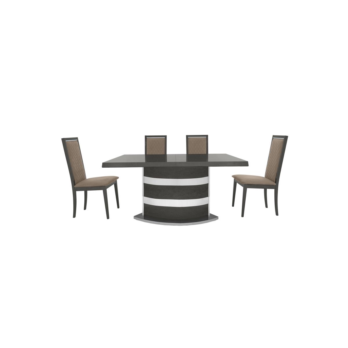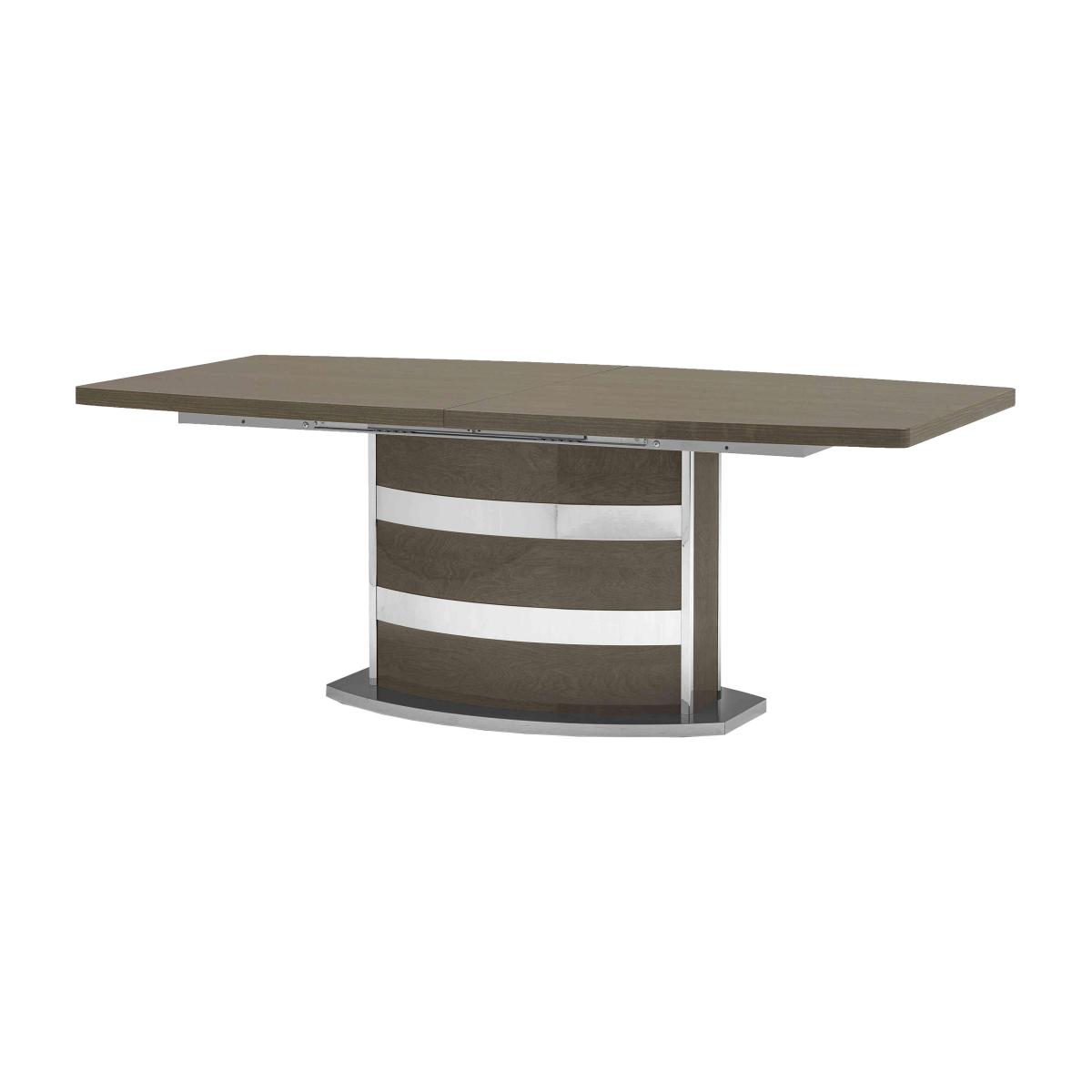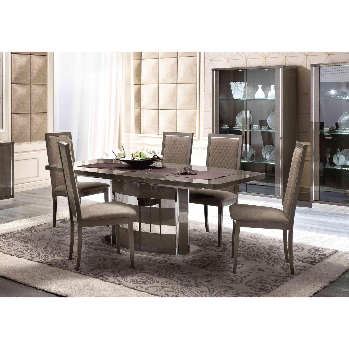 With its flawless high-gloss finish and superb craftsmanship, our 100% made in Italy Palazzo dining range from Italian brand Modum is the very essence of modern Italian furniture style. From dining sets to sideboards and occasional tables to curio cabinets, the collection’s gorgeous lacquered surfaces are enhanced with a subtle woodgrain pattern, bevelled edges and gunmetal grey metallic accents. Effortless contemporary style is matched by practical design choices like push to open drawers and built-in LED cabinet lighting. At the heart of the collection is the Palazzo extending dining table which includes two extension leaves and can accommodate two more for an absolutely stunning dining table that’s a full four metres in length. Love Palazzo’s fabulous glam style? It’s also available as a bedroom furniture collection. It’s made in Italy and it shows. Sleek and stylish, this high-gloss extending dining table has a beautiful lacquered silver birch finish and a standout pedestal base. Why you'll love it. Extending dining table is the ultimate in gorgeous Italian furniture. Modern glam style. Stunning high-gloss silver birch finish. Lacquered top and tapered edges feature a continuous woodgrain effect. Curved pedestal base is embellished with brushed stainless steel bands. Table smoothly slides apart to accommodate the extension leaf. Available in two sizes – 160 cm and 200 cm. Beautifully made in Italy. This extending dining table is part of the Palazzo collection. What you need to know. Both sizes of dining table accommodate 1 extension leaf, supplied. 160 cm table seats 6. Extends to 205 cm to seat 8. 200 cm table seats 8. Extends to 245 cm to seat 10. Extension leaf cannot be stored within the body of the table. The lacquered finish is 4 layers deep, the result of a unique high-tech process. Please note that the lacquered finish may show surface scratches under certain lighting. The Palazzo range also includes a wide choice of dining sets.