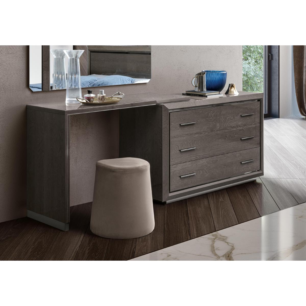 Modern glam style. Gorgeous high-gloss lacquered surfaces. Elegant contemporary details. Meet our Italian bedroom furniture collection Palazzo from Italian brand Modum. This stunning range is as extensive as it is striking. You'll find chests of drawers in all sizes, spacious sliding and hinged wardrobes, and a truly incredible bed frame with a choice of high-gloss or cushioned headboard. Finished in silver birch with a subtle woodgrain effect, pieces showcase bevelled edges and gunmetal grey metallic accents. And everything is made in Italy for that effortless blend of chic style and quality craftsmanship. For more of this fabulous glam look, be sure to discover the Palazzo dining furniture collection. Chic and stylish, this modern, teardrop-shaped bedroom stool features luxe top to floor fabric upholstery. It’s the perfect neat and tidy seating choice for a bedroom dressing table. Made in Italy. Why you'll love it. The ultimate in gorgeous Italian furniture for bedrooms. Modern glam style. Cool and contemporary teardrop-shaped bedroom stool. Stool is rounded with one flat edge that allows it to be neatly stowed against a wall. Fully upholstered in a choice of elegant fabrics. Pairs perfectly with the Palazzo 1-drawer dresser. Beautifully made in Italy. What you need to know. Clean fabric weekly using a soft brush or vacuum with the curtain attachment. Professional cleaning advised for oil- and grease-based stains. Some fabrics can show wear on areas of more use or in direct sunlight. Part of the extensive Italian-made Palazzo bedroom furniture collection. Palazzo is also available as a living and dining room collection.