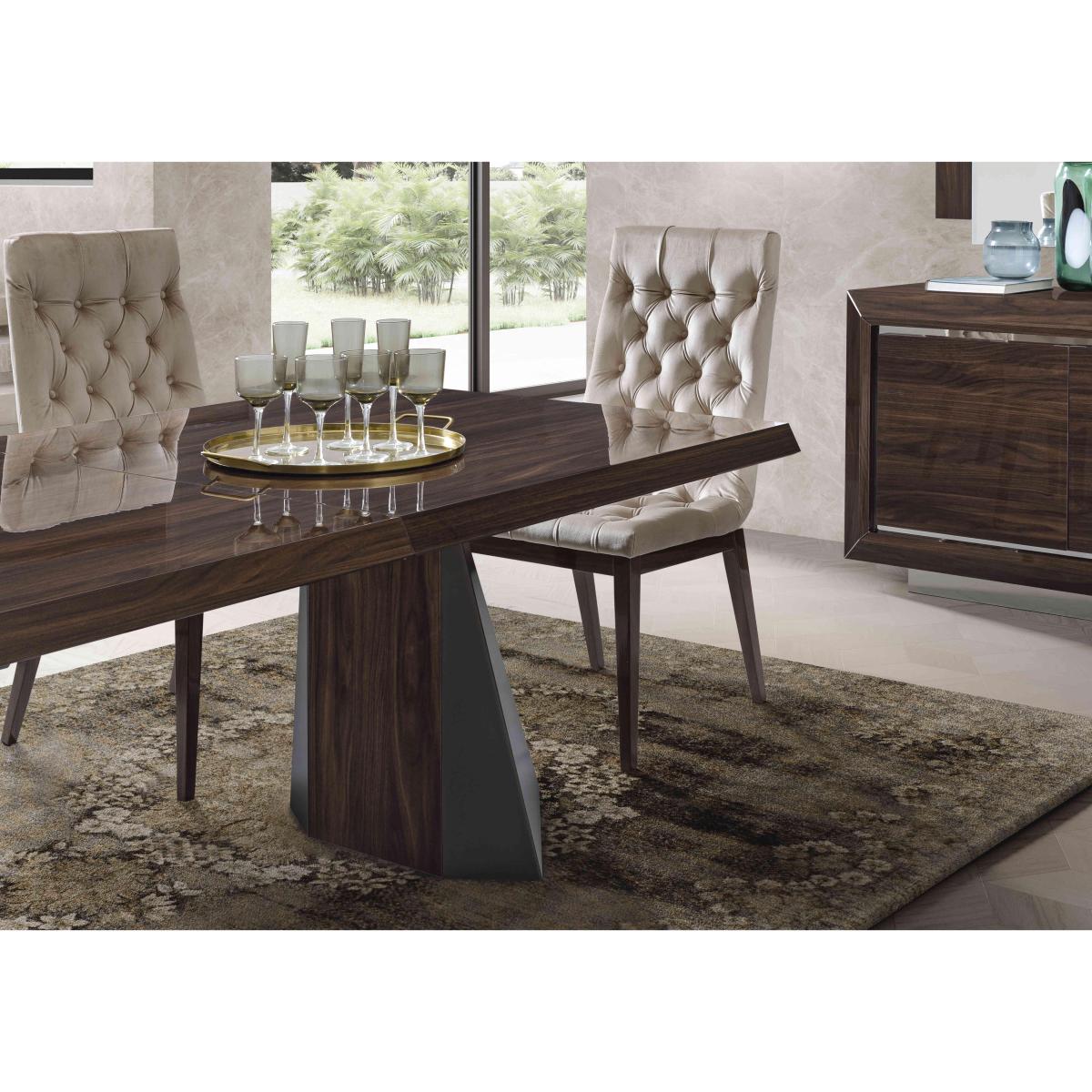 With its flawless high-gloss finish and superb craftsmanship, our 100% made in Italy Palazzo dining range from Italian brand Modum is the very essence of modern Italian furniture style. From dining sets to sideboards and occasional tables to curio cabinets, the collection’s gorgeous lacquered surfaces are enhanced with a subtle woodgrain pattern, bevelled edges and gunmetal grey metallic accents. Effortless contemporary style is matched by practical design choices like push to open drawers and built-in LED cabinet lighting. At the heart of the collection is the Palazzo extending dining table which includes two extension leaves and can accommodate two more for an absolutely stunning dining table that’s a full four metres in length. Love Palazzo’s fabulous glam style? It’s also available as a bedroom furniture collection. Looking for a standout dining table? This one has a gorgeous high-gloss lacquered finish and a bold metallic base. Glam dining style from Italy in three sizes and three finishes. Why you'll love it. Extending dining table is the ultimate in gorgeous Italian furniture. Modern glam style. Lacquered top and tapered edges feature a continuous woodgrain effect. Ultra-modern, tent-shaped table legs in dark grey powder-coated steel. Table smoothly slides apart to accommodate the extension leaves. In 3 sizes and 3 sophisticated finishes – sand birch, silver birch and dark walnut. Beautifully made in Italy. This extending dining table is part of the Palazzo collection. What you need to know. All 3 sizes of dining table accommodate 2 extension leaves, supplied. 140 cm table seats 4. Extends to 240 cm to seat 8. 160 cm table seats 6. Extends to 260 cm to seat 10. 200 cm table seats 8. Extends to 300 cm to seat 12. Extension leaves cannot be stored within the body of the table. The lacquered finish is 4 layers deep, the result of a unique high-tech process. Please note that the lacquered finish may show surface scratches under certain lighting. The Palazzo range also includes a wide choice of dining sets.