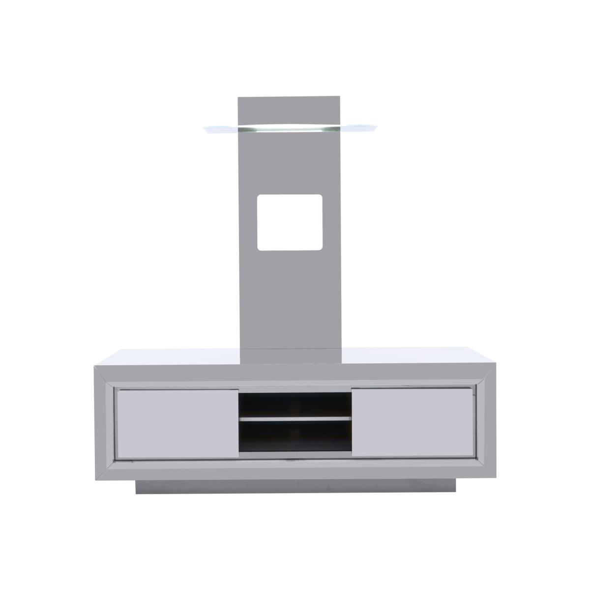 Seriously stylish, this large TV and media unit showcases a very contemporary high-gloss lacquered finish as well as plenty of useful storage space for your media components. The stylish TV wall panel just oozes cool Italian style. Why you'll love it Sleek and stylish all-in-one TV base unit and TV wall panel. Glam and gorgeous Italian furniture. High-gloss vertical wall panel accommodates TVs up to 55 inches and alcove makes a striking statement. Stylish vertical wall panel. Lacquered finish has a beautiful woodgrain effect. Bevelled edges with inset gunmetal grey metallic detail. Powder-coated stainless steel plinth. Push to open soft-closing cupboard doors. In a choice of sophisticated woodgrain-effect colours. Also available in perfectly smooth and sleek glossy white. Beautifully made in Italy. This TV base unit and TV wall panel is part of the Palazzo range. What you need to know 2 cupboards, each with an adjustable shelf. Alcove has 1 adjustable shelf. Cupboard door hinges are adjustable. Important: this TV wall panel will not be fixed to the wall by our delivery team. We recommend professional installation. Please note that a TV wall bracket is not included with the TV wall panel. The Palazzo TV wall panel has an aperture 35 cm by 30 cm to allow you to mount a full-motion, extending arm TV bracket to the wall behind. A tilting or flat-to-wall TV bracket can be mounted directly onto the Palazzo TV wall panel. The lacquered finish is 4 layers deep, the result of a unique high-tech process. Please note that the lacquered finish may show surface scratches under certain lighting. Part of the extensive Italian-made Palazzo living and dining collection. Palazzo is also available as a bedroom furniture collection. Warning!This item should be fixed to a wall using the anti-tip wall-hanging kit provided. Be sure to use the correct wall fixings suitable for the walls in your home. Failure to do so could result in injury if this unit tips over unexpectedly or is knocked, pulled down or otherwise displaced. Please note:Our delivery team will not be able to attach this unit to your wall. It will be unwrapped and left for you to install.