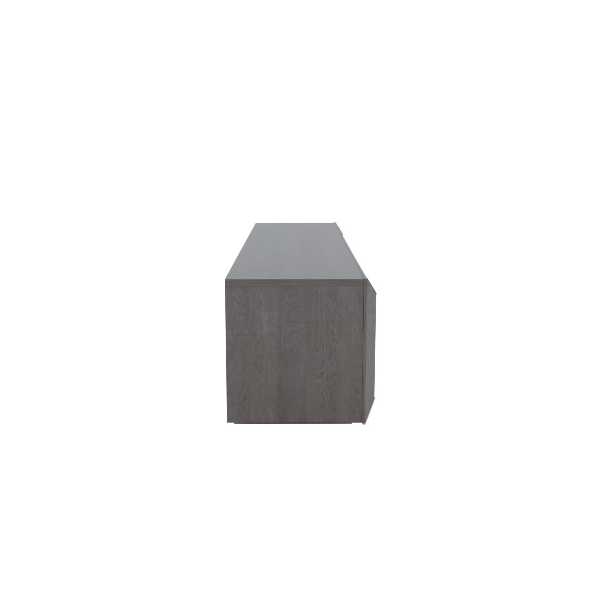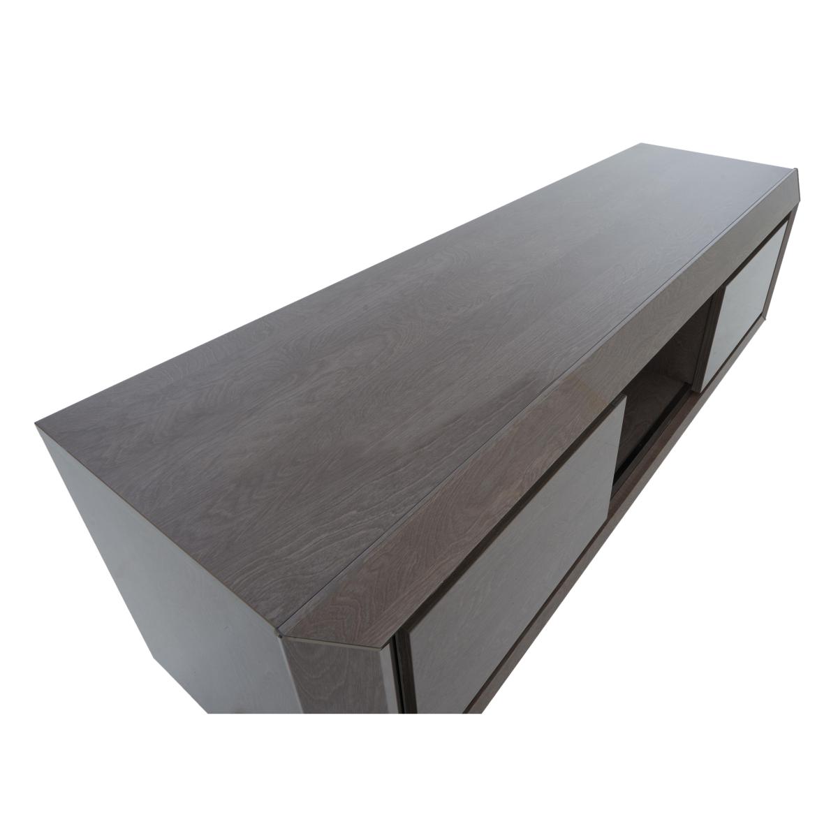 With its flawless high-gloss finish and superb craftsmanship, our 100% made in Italy Palazzo dining range from Italian brand Modum is the very essence of modern Italian furniture style. From dining sets to sideboards and occasional tables to curio cabinets, the collection’s gorgeous lacquered surfaces are enhanced with a subtle woodgrain pattern, bevelled edges and gunmetal grey metallic accents. Effortless contemporary style is matched by practical design choices like push to open drawers and built-in LED cabinet lighting. At the heart of the collection is the Palazzo extending dining table which includes two extension leaves and can accommodate two more for an absolutely stunning dining table that’s a full four metres in length. Love Palazzo’s fabulous glam style? It’s also available as a bedroom furniture collection. Seriously stylish, this large TV and media unit showcases a very contemporary high-gloss lacquered finish as well as plenty of useful storage space for your media components. Made in Italy. Why you'll love it TV base with media storage makes a high-gloss impact. Glam and gorgeous Italian furniture. Lacquered finish has a beautiful woodgrain effect. Bevelled edges with inset gunmetal grey metallic detail. Powder-coated stainless steel plinth. Push to open soft-closing cupboard doors. In a choice of sophisticated woodgrain-effect colours. Also available in perfectly smooth and sleek glossy white. Beautifully made in Italy. This TV base is part of the Palazzo range. What you need to know 2 cupboards, each with an adjustable shelf. Alcove has 1 adjustable shelf. Cupboard door hinges are adjustable. The lacquered finish is 4 layers deep, the result of a unique high-tech process. Please note that the lacquered finish may show surface scratches under certain lighting. TV wall bracket not included. You will need to purchase a TV wall bracket separately. Part of the extensive Italian-made Palazzo living and dining collection. Palazzo is also available as a bedroom furniture collection. Warning!Please note