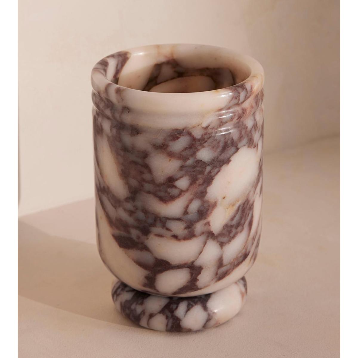 The Palazzo Wine Cooler in Calacatta Viola offers a sophisticated yet versatile finish that works well in both classic and contemporary settings. I love its luxurious marble effect, which elevates an interior without overwhelming it. This piece is ideal for adding a touch of elegance on side tables or mantels, especially when paired with minimalist floral arrangements or greenery for a fresh contrast. Practical styling tips include using it as a standalone decorative accent or filling it with seasonal blooms to bring colour and life into a space. Its sturdy build and timeless design make it a durable and stylish addition to various interior styles.