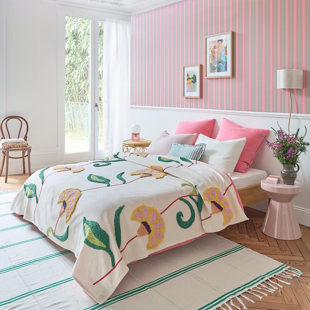 A repertoire of flowers inspired by wallpaper, in fresh, vibrant tones... Made from Natte cotton, the Palema bedspread is a decorative piece in its own right. Placed on a bed, it makes a poetic addition to your home furnishings... An original creation by La Redoute Intérieurs. Product Details • 100% braided cotton • Tufted floral patterns. Care Advice • Machine washable at: 30°CDimensions • 180 x 230cm • 230 x 250cm
