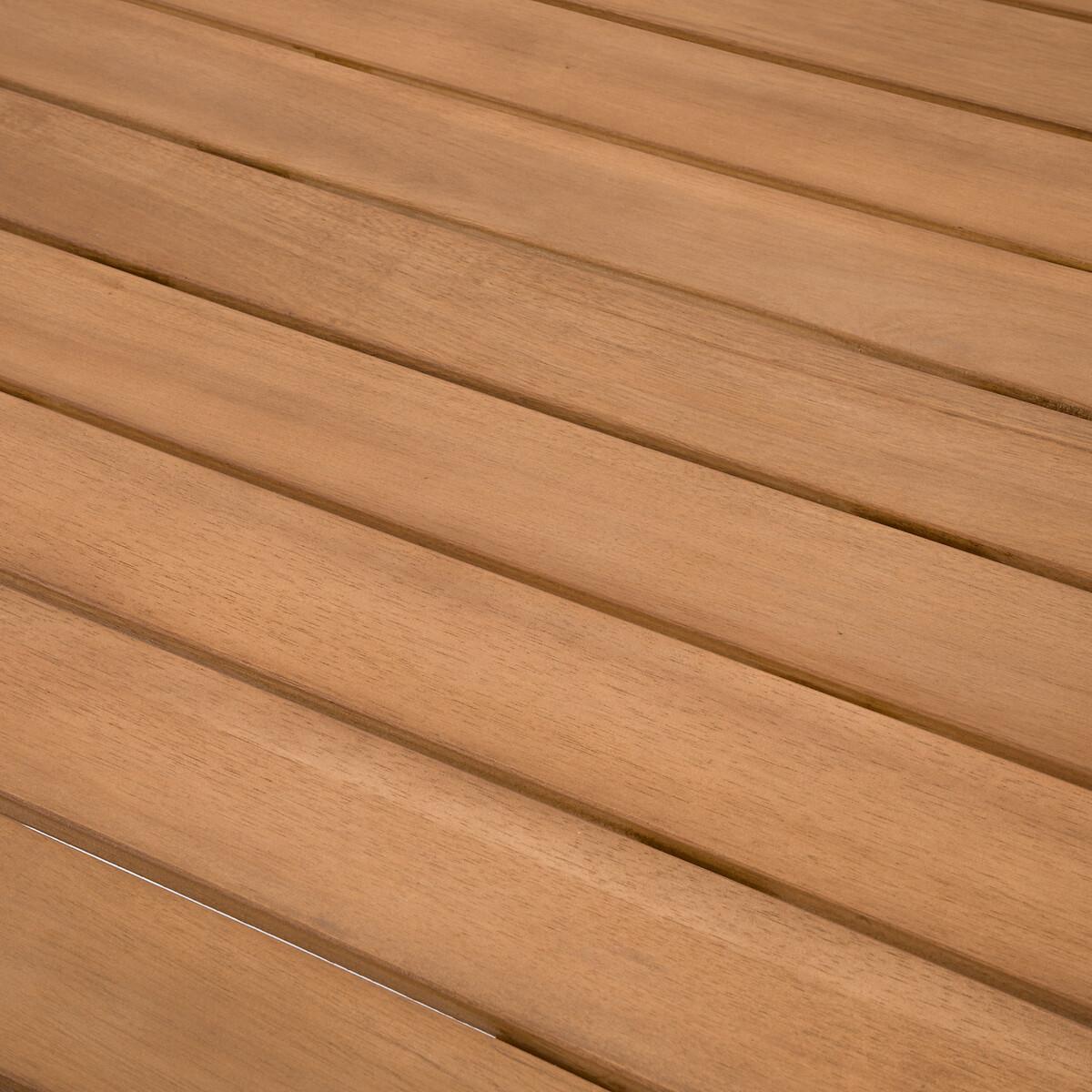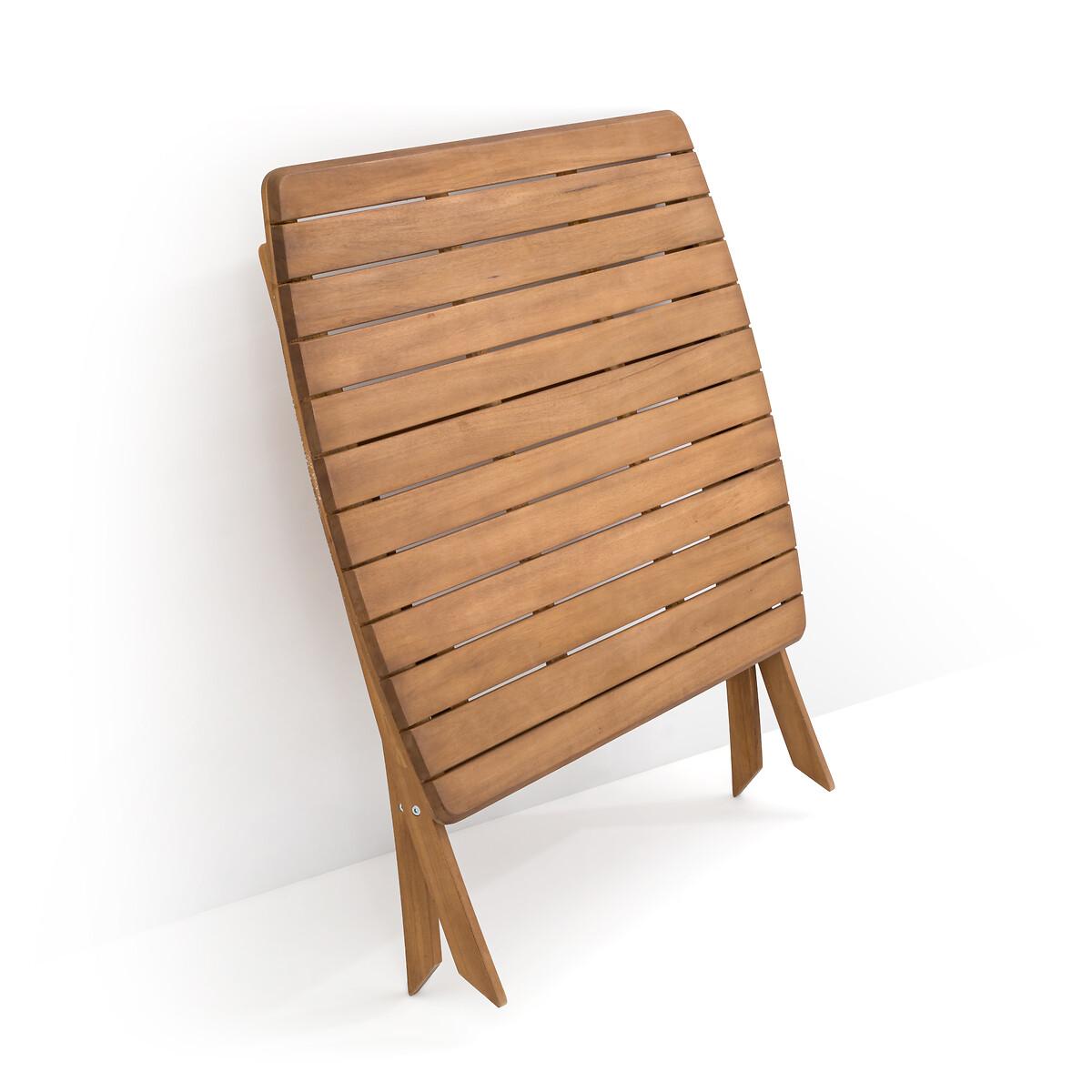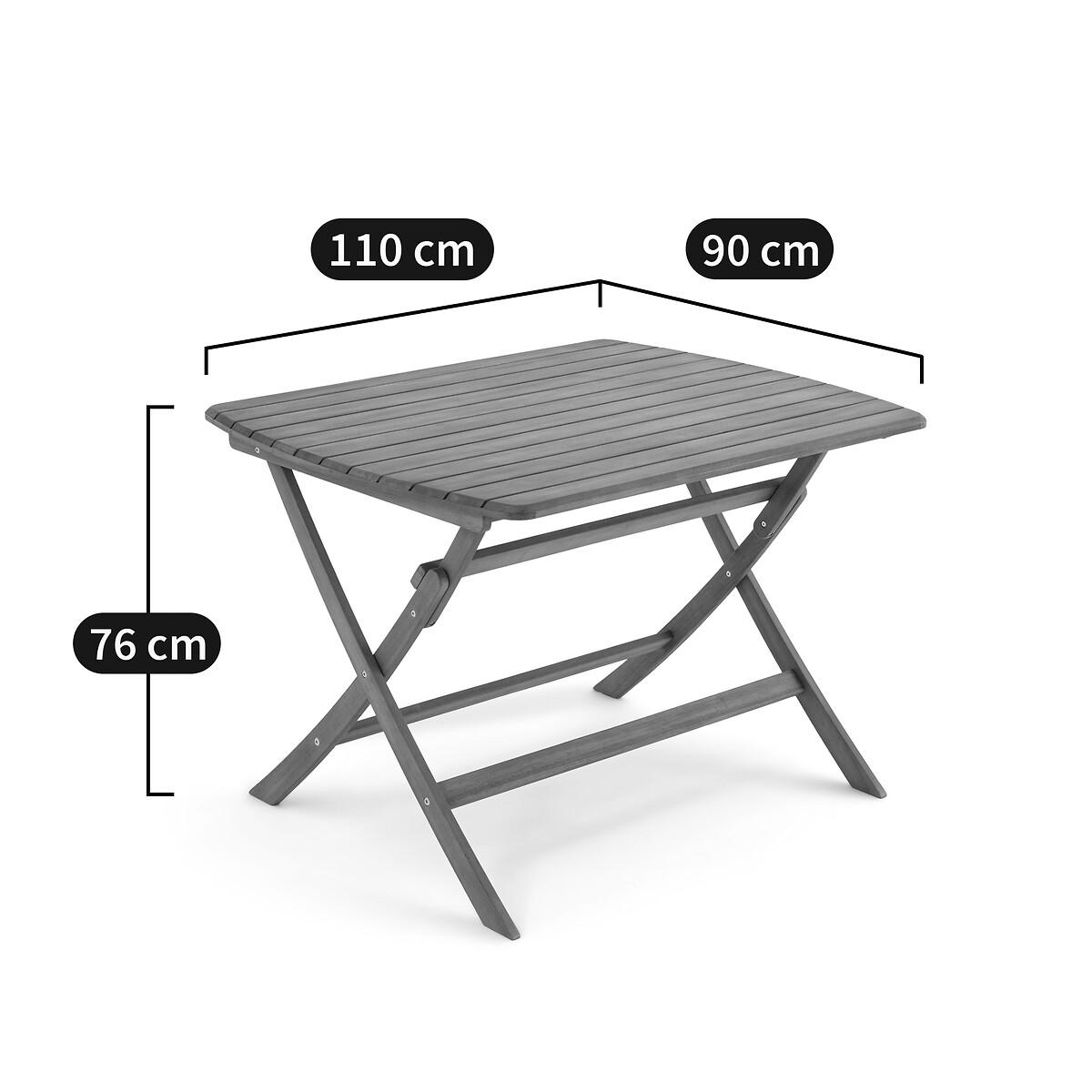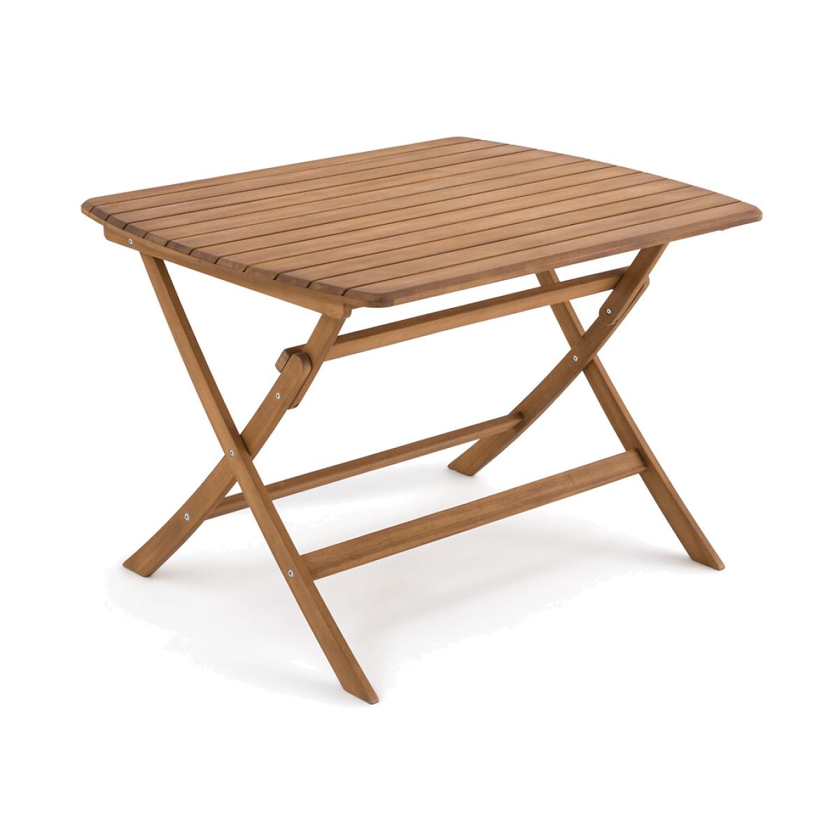 An invitation to relax. Designed in acacia, the Palera range allows you to create your own garden furniture set. This garden table can accommodate 4 people. It is foldable for easy storage.. Product Details • In FSC® certified acacia, oiled finish • Top in openwork slats, 7.1cm • Folding • Seats 4 people Quality Info • Acacia is a wood that offers good mechanical properties (good resistance to insects and fungi) and is resistant to bad weather (alternation of dry and humid periods).Dimensions • Width: 110cm • Height: 76cm • Depth: 90cm • Weight: 12.5kgDelivery:. This product is sold ready to assemble. Note! Please check that all access points are large enough to accommodate your delivery (doors, stairs, lifts). • WOOD FROM SUSTAINABLY MANAGED FORESTS. FSC® certified wood comes from forests that are environmentally, socially and economically well managed. Dimensions and weight of parcel1 parcel • L116 x H9 x D94.5cm. 15.5kg