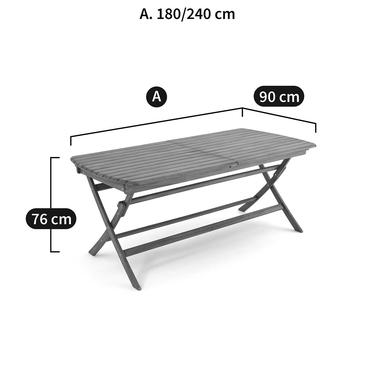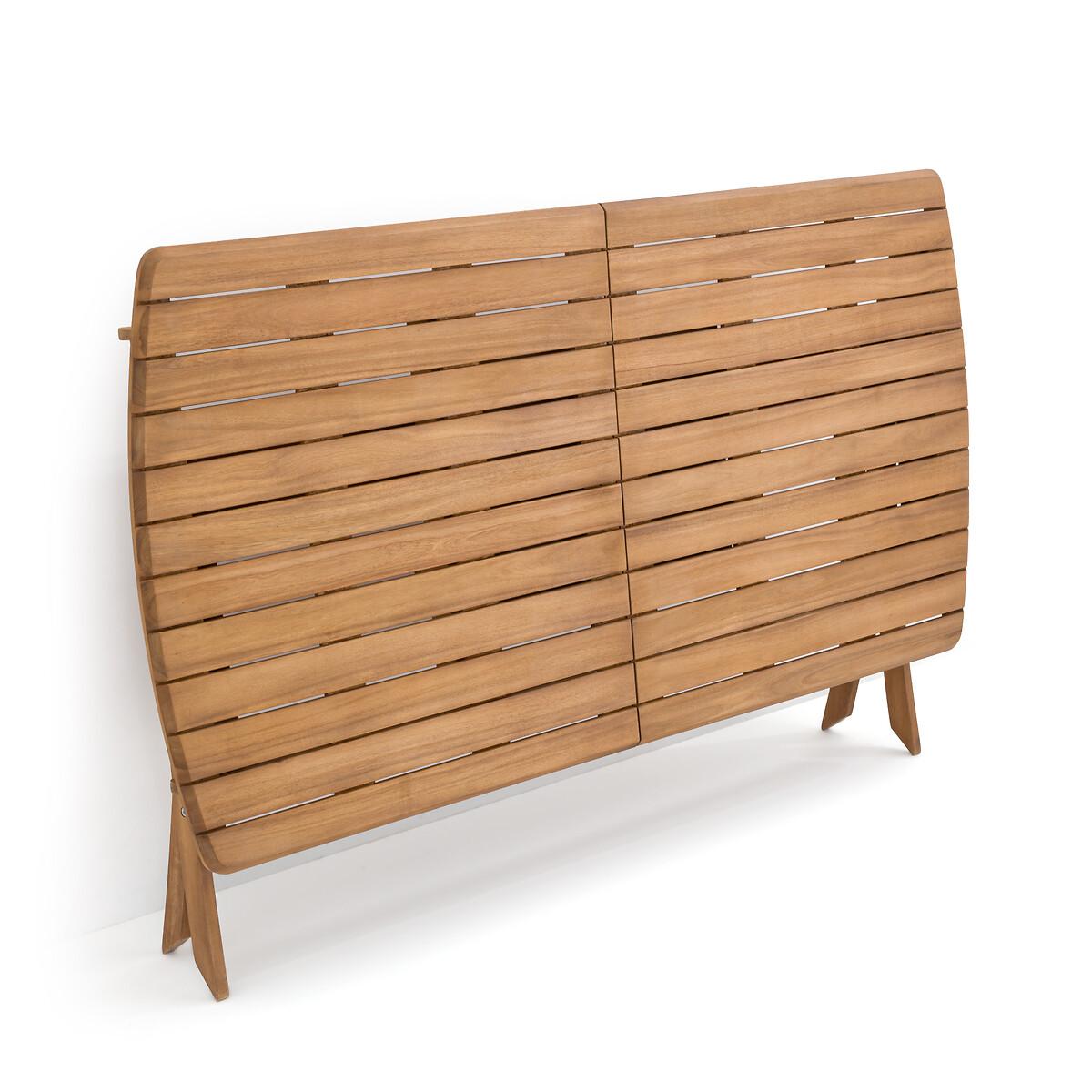 An invitation to relax. Designed in acacia, the Palera range allows you to create your own garden furniture set. Thanks to its central extension, this garden table can accommodate up to 12 people. It is foldable for easy storage. Product Details • In FSC® certified acacia, oiled finish • Top in 7.1cm openwork slats, beveled edge • Butterfly extension • Folding • Seats up to 12 people Quality Info • Acacia is a wood that offers good mechanical properties (good resistance to insects and fungi) and is resistant to bad weather (alternation of dry and humid periods).Dimensions • Width (without and with extension) :180/240cm • Height: 76cm • Depth: 90cm • Weight: 30.5kgDelivery:. This product is sold ready to assemble. Note! Please check that all access points are large enough to accommodate your delivery (doors, stairs, lifts). • WOOD FROM SUSTAINABLY MANAGED FORESTS. FSC® certified wood comes from forests that are environmentally, socially and economically well managed. Dimensions and weight of parcel1 parcel • L186 x H13.5 x D94.5cm. 38kg