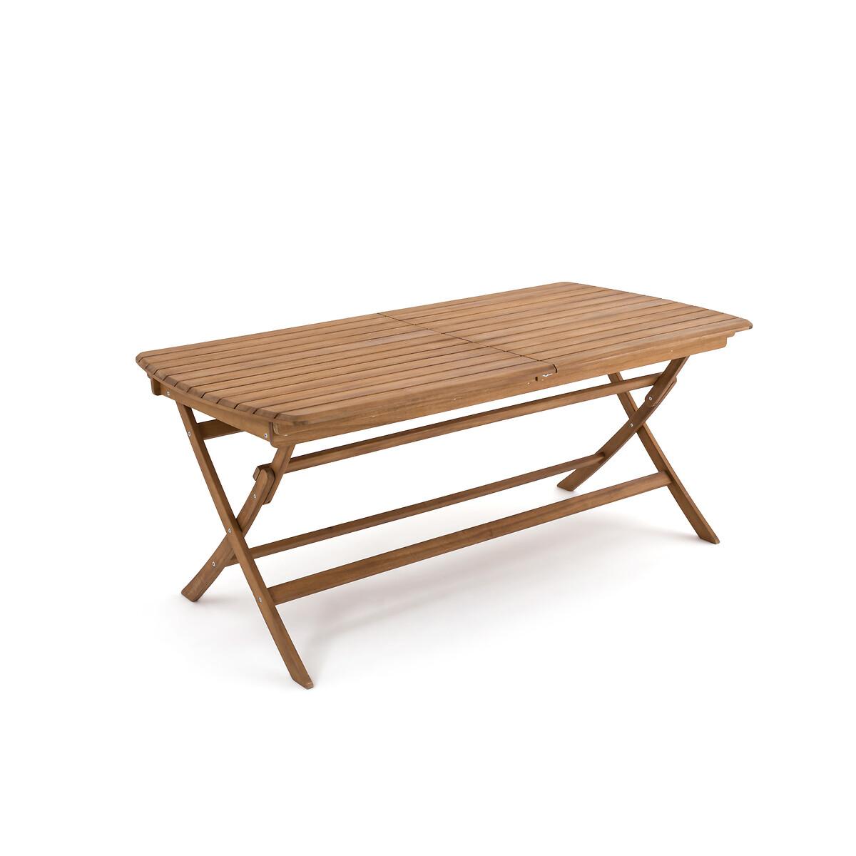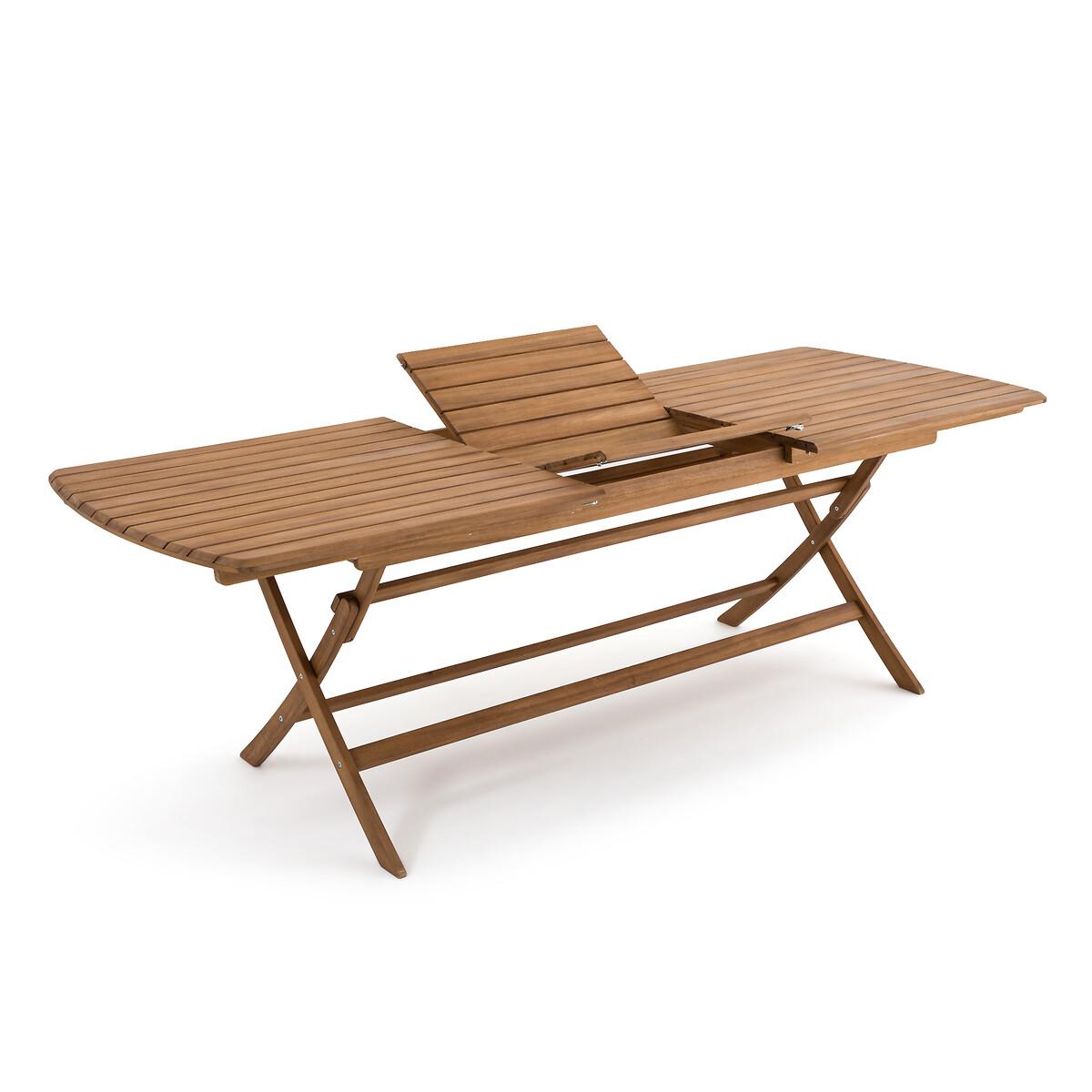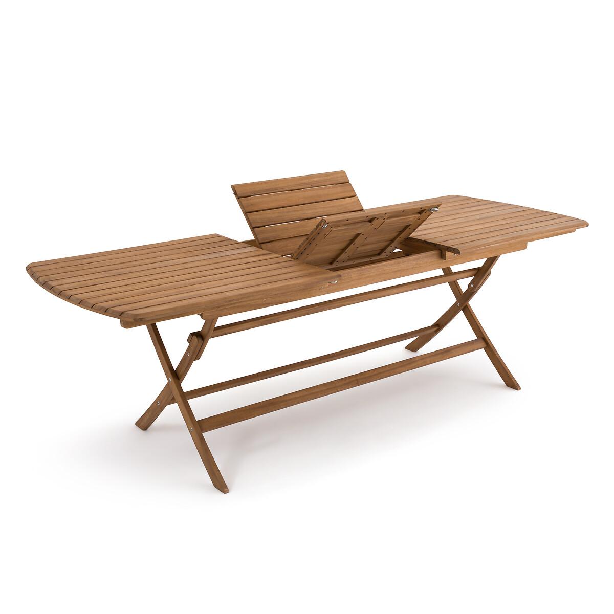 An invitation to relax. Designed in acacia, the Palera range allows you to create your own garden furniture set. Thanks to its central extension, this garden table can accommodate up to 12 people. It is foldable for easy storage. Product Details • In FSC® certified acacia, oiled finish • Top in 7.1cm openwork slats, beveled edge • Butterfly extension • Folding • Seats up to 12 people Quality Info • Acacia is a wood that offers good mechanical properties (good resistance to insects and fungi) and is resistant to bad weather (alternation of dry and humid periods).Dimensions • Width (without and with extension) :180/240cm • Height: 76cm • Depth: 90cm • Weight: 30.5kgDelivery:. This product is sold ready to assemble. Note! Please check that all access points are large enough to accommodate your delivery (doors, stairs, lifts). • WOOD FROM SUSTAINABLY MANAGED FORESTS. FSC® certified wood comes from forests that are environmentally, socially and economically well managed. Dimensions and weight of parcel1 parcel • L186 x H13.5 x D94.5cm. 38kg