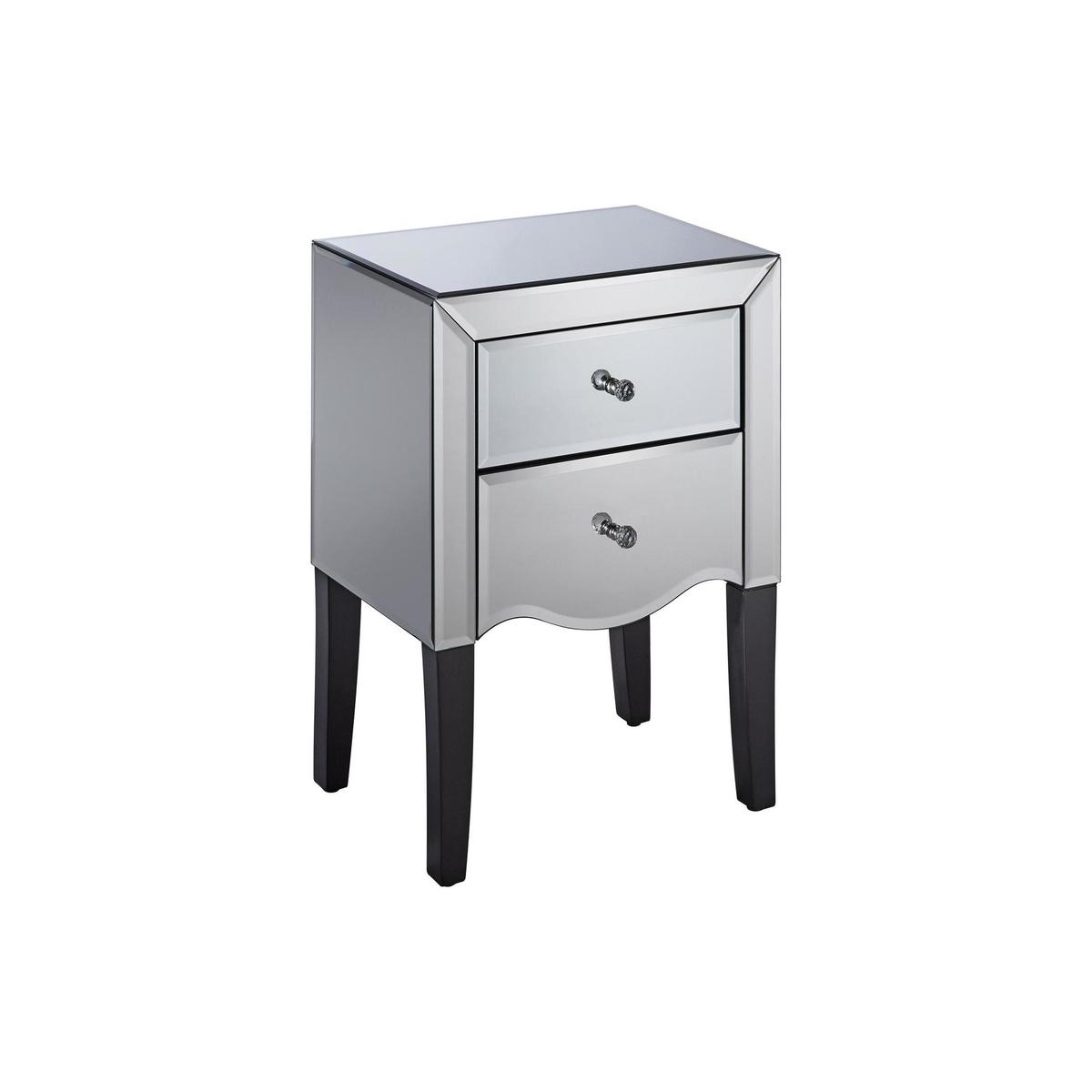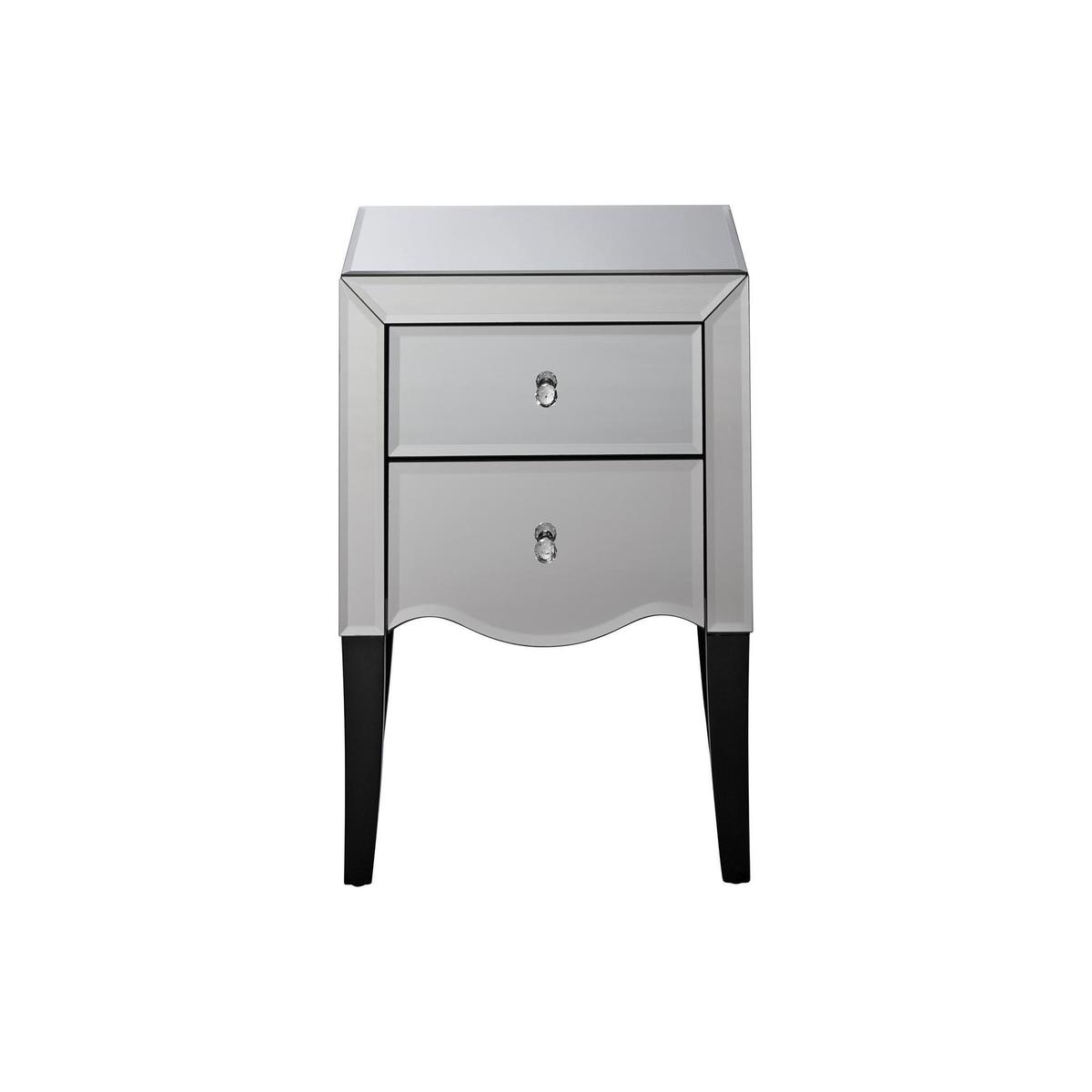 * Rubberwood frame* Mirrored finish* Mock crystal handles Introducing the glamorous Palermo bedside table. The mirrored finish and drawers don’t just add a handy storage solution to your space, they also instantly elevate your room to luxurious levels of class. Better yet, the Palermo helps to reflect light, making smaller spaces feel bigger.