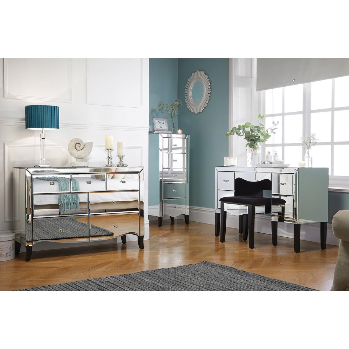 This dressing table is a fantastic choice for adding a touch of contemporary elegance to both modern and eclectic interiors. The silver finish makes it versatile enough to complement colour schemes ranging from soft neutrals to bold accent hues. I love that it combines practical storage with a sleek look, making it perfect for organising jewellery, skincare, and accessories. To style it effectively, consider pairing it with minimalist accessories or vintage-inspired mirrors to enhance its reflective quality, and keep the surface clutter-free to maintain its chic aesthetic. The black legs add a subtle contrast that grounds the piece, allowing it to work well in both monochrome and more vibrant, layered spaces.
