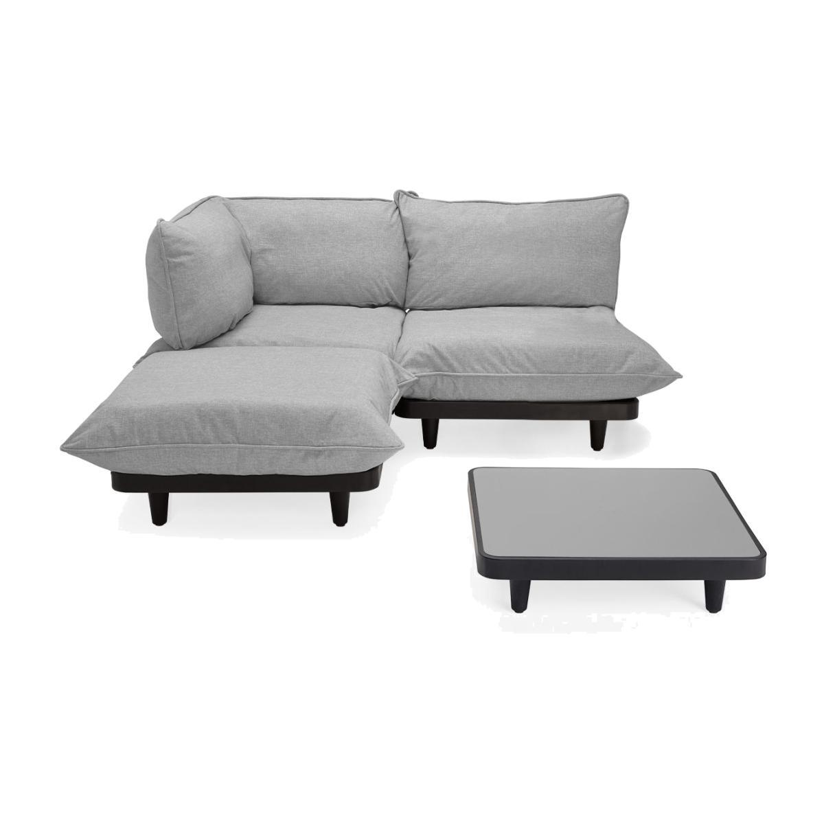 This modular set allows you to compose a complete living area in your garden, with endless personalisation options. This set includes 4 modules: a coffee table with an aluminium tabletop and a modular corner sofa composed of three seats (can be used together or separately): 1 Paletti Corner corner module + 1 Paletti low chair + 1 ottoman. Red connectors included to attach the modules to each other. Dimensions of the three modules connected as a corner sofa: L 180 x D 90 / 180 cm x H 90 cm. Modular design, modern lines, highly comfortable padded seats: the Paletti collection lets you compose a great outdoor living area. The design of the Paletti range takes inspiration from stackable and easy-to-store transport pallets. Use the different seats to create a bespoke paradise for relaxing in no time at all. Combine, invite and relax. With its urban look, both casual and elegant, Paletti will make a splash in a garden, by the pool or on a terrace. Ideal for lounging about for hours, having an aperitif with friends, living outside and in! The materials are resistant to outdoor conditions and hard-wearing. The cushions are filled with high-quality memory foam for lasting comfort. The exterior fabric covers are waterproof, and UV-, mould- and stain-resistant! Removable covers that can be machine-washed, they are easy-care. The modular Paletti collection gives you numerous possibilities. It includes a low chair, a corner low chair, a pouffe and a coffee table that make up a complete living room. The seats are modular: each seat can be used separately or combined with others to create numerous combinations according to your needs and the space available. Create your own composition and set it up however you like, using the red connectors included to attach the modules to each other. Create a wonderful décor with or without backrests and the corner. Anything is possible: a solo armchair, a chaise longue to have a nap on, a corner sofa, a full XXL living room to welcome any number of guests. The large dimensions of the seats and large soft cushions ensure optimal comfort. The structure is made of recycled polyethylene. The Paletti coffee table creates a stunning contrast of materials and colours. The aluminium tabletop is encircled by an anthracite border which gives it originality and sophistication. The table's structure is made from recycled polyethylene. The product purchased meets the requirements of current French and European standards. However, and with regard to the delivery address (especially outside France), we inform you that the product purchased does not meet the requirements of the standards in force in the country of destination.