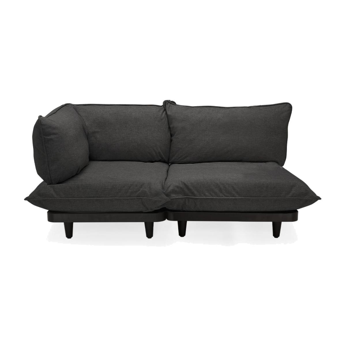 This two-seater modular sofa is composed of two seats (which can be connected together or used separately): 1 Paletti Corner corner module + 1 Paletti low chair. Red connectors included to attach the modules to each other. Dimensions of two modules assembled: L 180 x D 90 cm x H 90 cm. Modular design, modern lines, highly comfortable padded seats: the Paletti collection lets you compose a great outdoor living area. The design of the Paletti range takes inspiration from stackable and easy-to-store transport pallets. Use the different seats to create a bespoke paradise for relaxing in no time at all. Combine, invite and relax. With its urban look, both casual and elegant, Paletti will make a splash in a garden, by the pool or on a terrace. Ideal for lounging about for hours, having an aperitif with friends, living outside and in! The materials are resistant to outdoor conditions and hard-wearing. The cushions are filled with high-quality memory foam for lasting comfort. The exterior fabric covers are waterproof, and UV-, mould- and stain-resistant! Removable covers that can be machine-washed, they are easy-care. The modular Paletti collection gives you numerous possibilities. It includes a low chair, a corner low chair, a pouffe and a coffee table that make up a complete living room. The seats are modular: each seat can be used separately or combined with others to create numerous combinations according to your needs and the space available. Create your own composition and set it up however you like, using the red connectors included to attach the modules to each other. Create a wonderful décor with or without backrests and the corner. Anything is possible: a solo armchair, a chaise longue to have a nap on, a corner sofa, a full XXL living room to welcome any number of guests. The large dimensions of the seats and large soft cushions ensure optimal comfort. The structure is made of recycled polyethylene. The product purchased meets the requirements of current French and European standards. However, and with regard to the delivery address (especially outside France), we inform you that the product purchased does not meet the requirements of the standards in force in the country of destination.