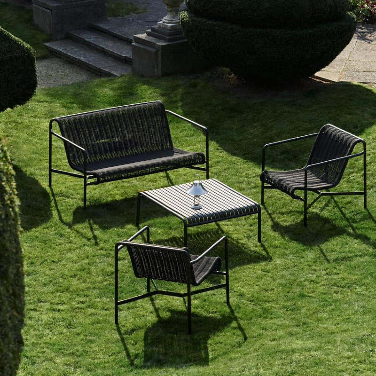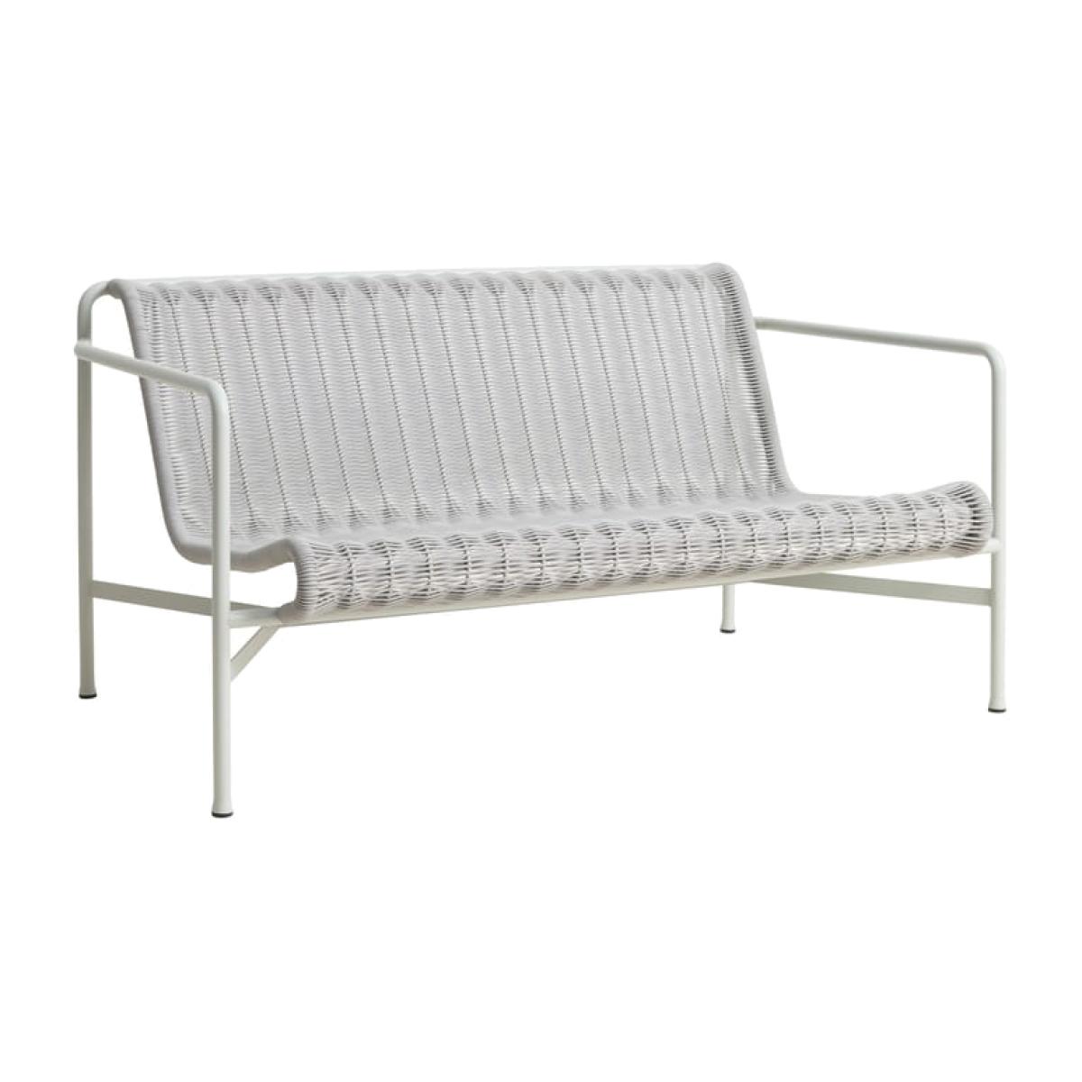 Palissade Cord collection: handcrafted elegance revisited by the Bouroullecs...Designed by Ronan & Erwan Bouroullec, the Palissade Cord collection embodies the perfect blend of contemporary minimalism and traditional craftsmanship. A sophisticated evolution of the iconic Palissade range, this outdoor furniture series features a hand-woven seat made from Recycled polyester rope. These Fabric Ropes offer remarkable flexibility, adapting harmoniously to the silhouette while guaranteeing exceptional seating comfort, even without a cushion. The steel structure, with its weather-resistant coating, forms a sleek frame in subtle dialogue with the woven ropes. Inspired by the woven plastic chairs of the 60s, Palissade Cord reinterprets this aesthetic with a contemporary twist, creating an openwork surface that plays with light for an airy, graphic effect. Available as armchairs, benches, Reclining chairs or sofas, this collection blends naturally into any outdoor environment, from urban terrace to bucolic garden. Combined with other pieces from the Palissade range or HAY tables, it promises versatility and timeless elegance. The Bouroullec brothers, pioneers of refined, sustainable design, infuse each piece with their unique vision of space and functionality. Care: To preserve the longevity and brilliance of your Palissade Rope furniture, regular care is recommended. Clean the Ropes with a soft Cloth dampened with lukewarm water and a neutral detergent, avoiding products containing bleach or aggressive chemical agents. After cleaning, allow to dry in a well-ventilated area to prevent the formation of mildew. When furniture is not in use, we recommend the use of a Palissade protection case to protect it from UV rays and the elements, thus prolonging its durability (case sold separately). In detail: Variation : Light grey Brand : Hay Designer : Ronan & Erwan Bouroullec Type : 2-seater outdoor sofa Colour : Light grey Material : Structure: powder-coated steel - Seat: rope in 100% recycled polyester fabric - Plastic glides. Dimensions :W 139 x D 88 cm x H 70 cm - Seat : H 38 cm Weight : 54.12 lb Characteristics : Hand-woven Rope - Suitable for outdoor use - Furniture glides under the Legs - 10-year warranty (quality and durable furniture ) function play(random, video. Url) ); Show less