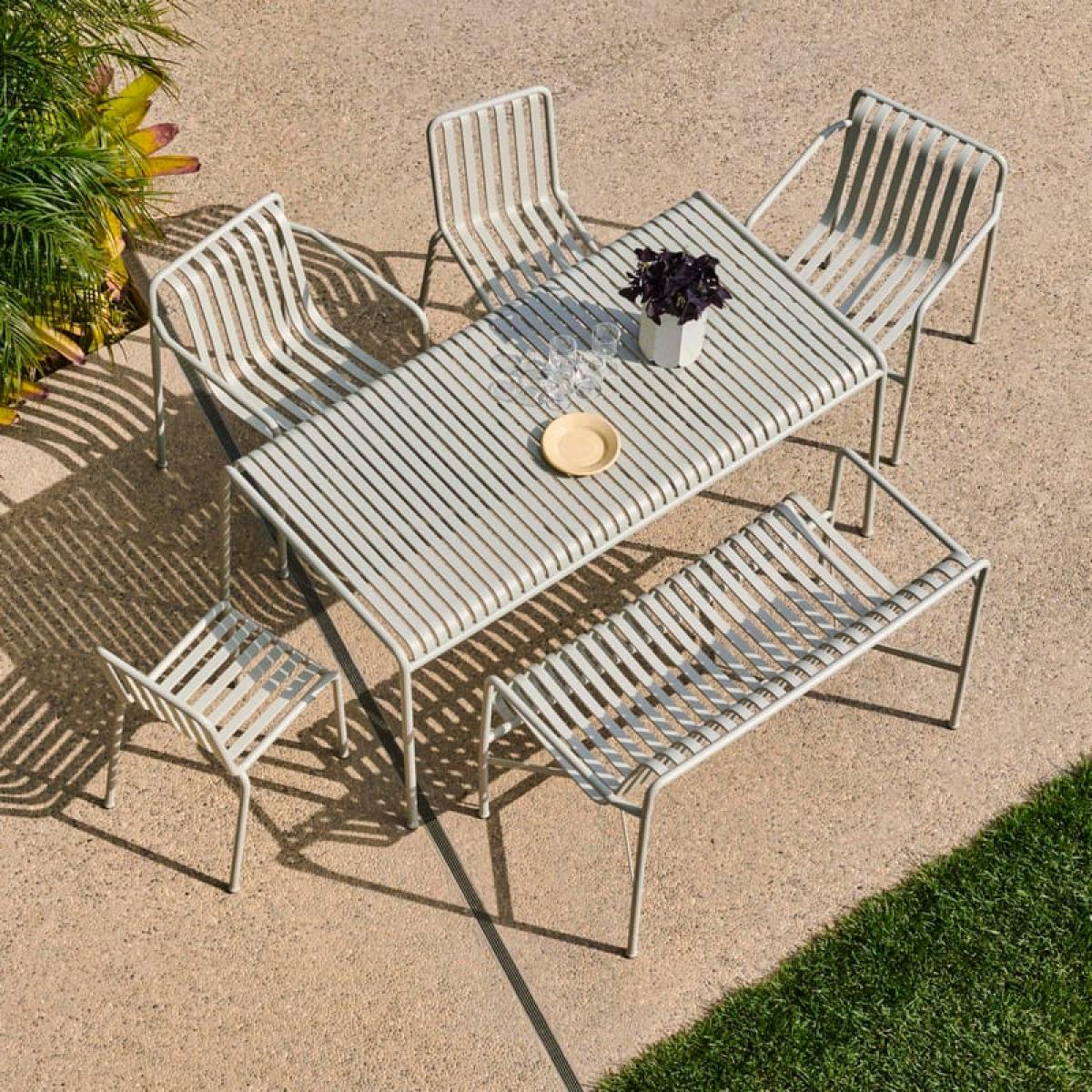 Characterized by its graphic purity and incredible visual lightness, the Palissade collection is the standard-bearer of the Bouroullec brothers' inimitable style. This comprehensive collection comprises thirteen items: chairs with and without armrests, armchairs of various sizes and comfort levels, benches, stools, tables... all of which can be used to create a dining or relaxation area in gardens and terraces, as well as in public spaces.