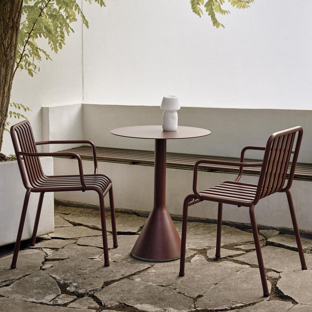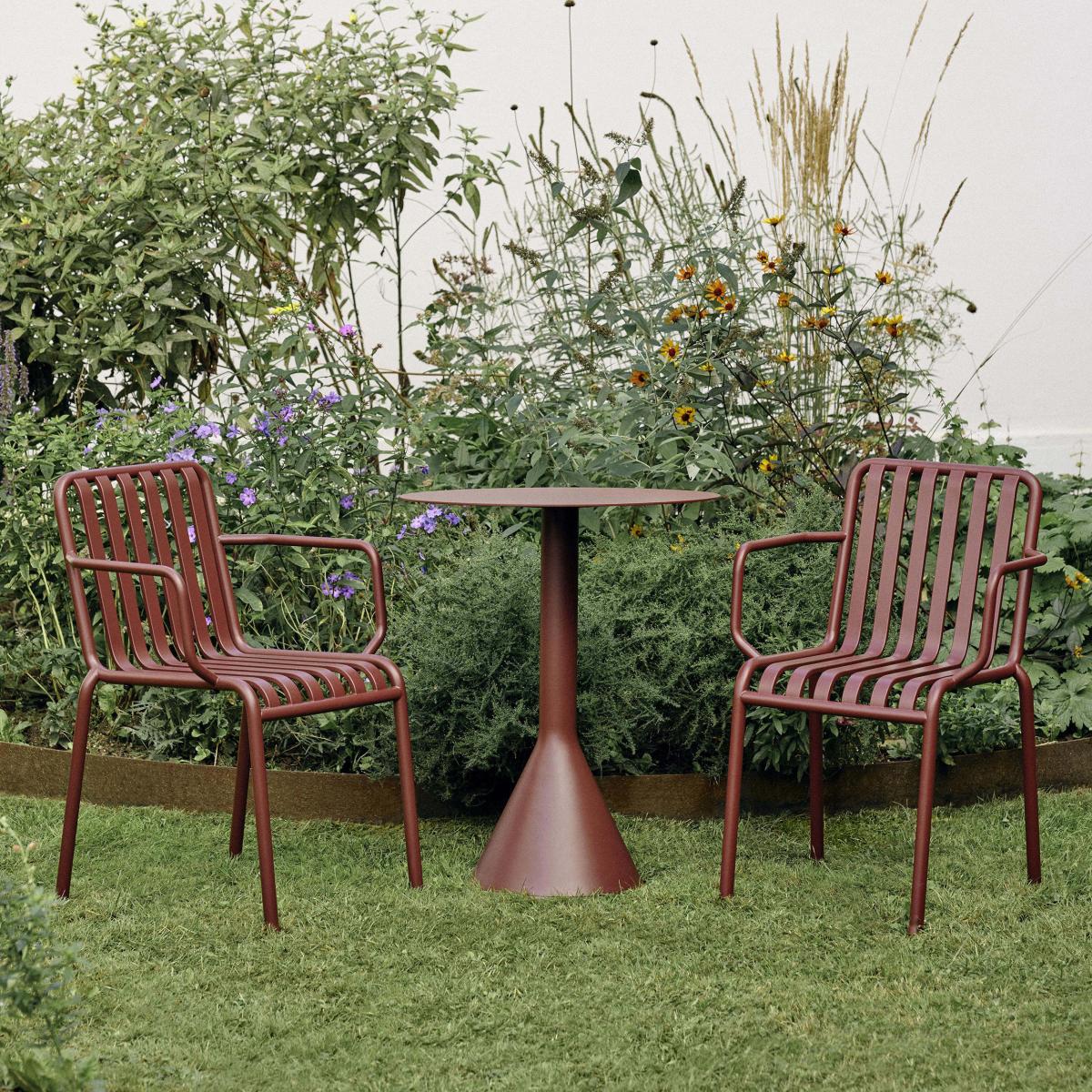 With its clean, graphic design and incredible visual lightness, the Palissade collection bears the unmistakable style of the Bouroullec brothers. Very complete, it consists of thirteen elements: chairs with or without armrests, armchairs with different sizes and levels of comfort, benches, stools, tables... Together, they create a dining or relaxation area in our gardens and on our terraces, as well as in public places. The Palissade is aesthetically very homogeneous and uses round tubes for the structures and legs, coupled with long rectangular strips that make up the seats. Very ergonomically successful, this collection offers excellent sitting comfort, even without a cushion.