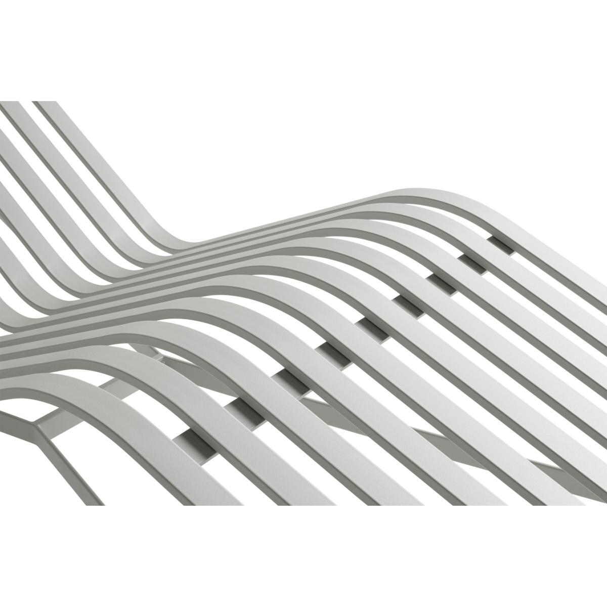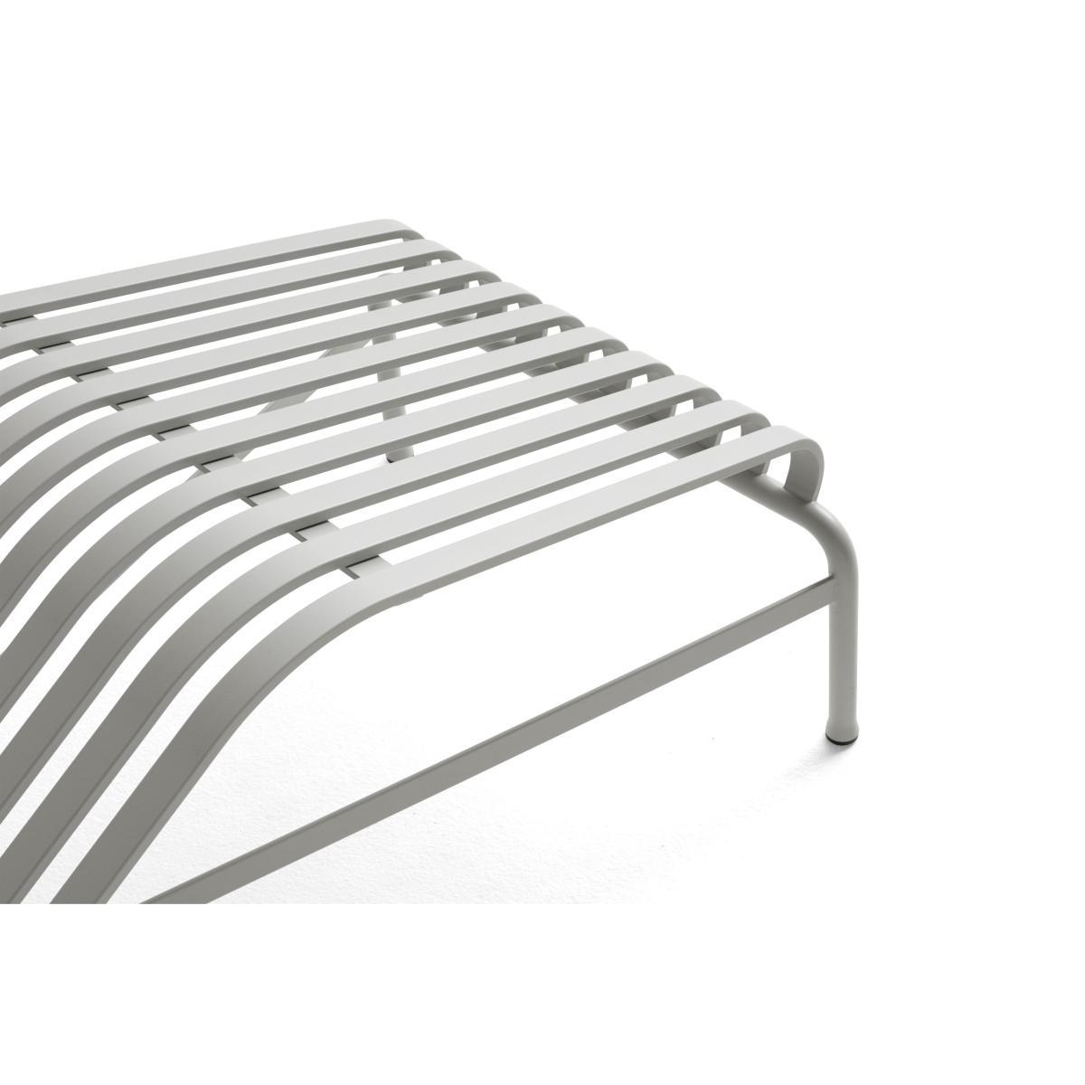 With its clean, graphic design and incredible visual lightness, the Palissade collection bears the unmistakable style of the Bouroullec brothers. Very complete, it consists of multiple items that let you compose a dining or relaxation area in your garden or on your terrace, as well as in public places. The Palissade is aesthetically very homogeneous and uses round tubes for the structures and legs, coupled with long rectangular strips that make up the seats. Very ergonomically successful, this collection offers excellent sitting comfort, even without cushion (cushions sold separately). For optimal comfort, you can accessorise this sun lounger with a thin mattress and headrest cushion, sold separately.