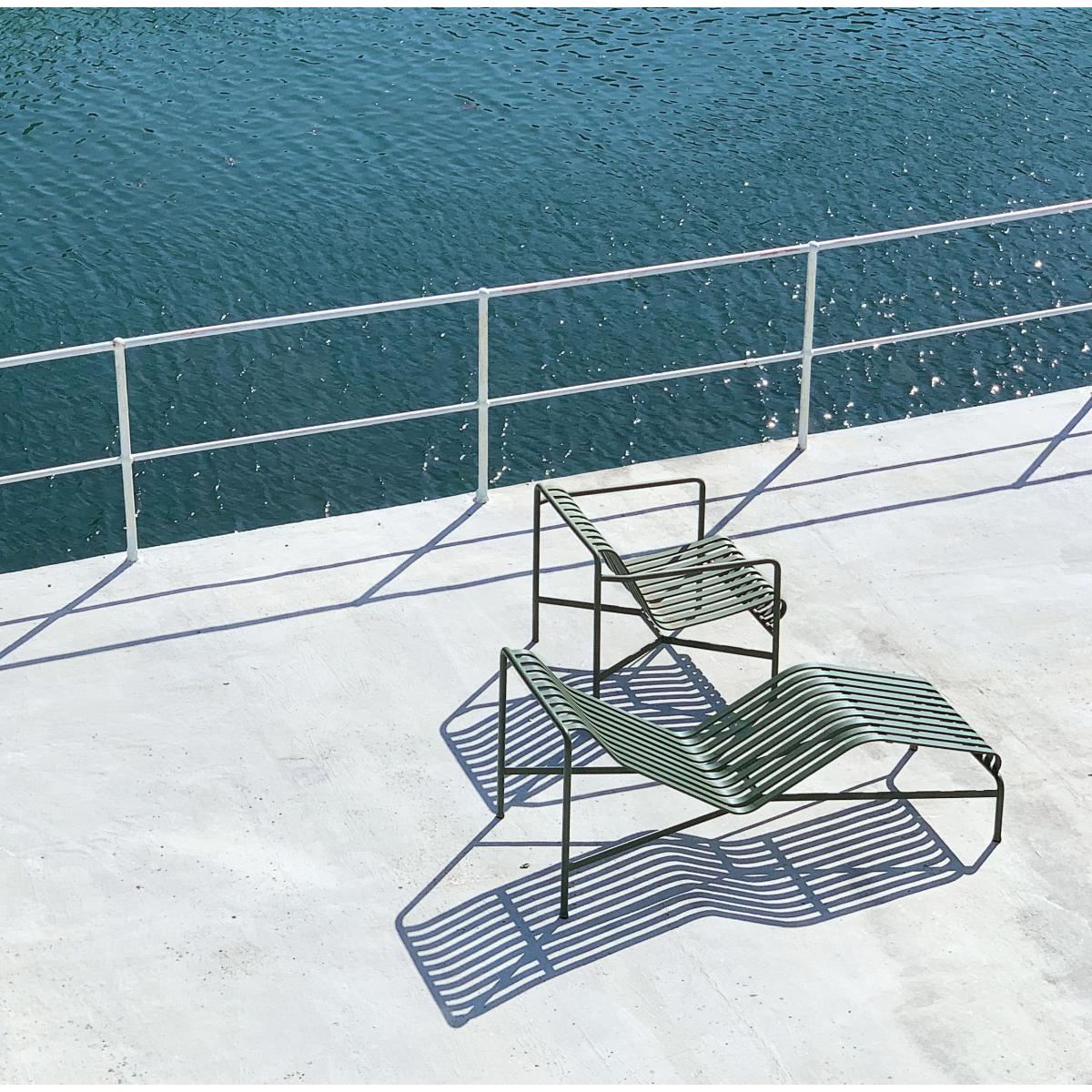 With its clean, graphic design and incredible visual lightness, the Palissade collection bears the unmistakable style of the Bouroullec brothers. Very complete, it consists of multiple items that let you compose a dining or relaxation area in your garden or on your terrace, as well as in public places. The Palissade is aesthetically very homogeneous and uses round tubes for the structures and legs, coupled with long rectangular strips that make up the seats. Very ergonomically successful, this collection offers excellent sitting comfort, even without cushion (cushions sold separately). For optimal comfort, you can accessorise this sun lounger with a thin mattress and headrest cushion, sold separately.