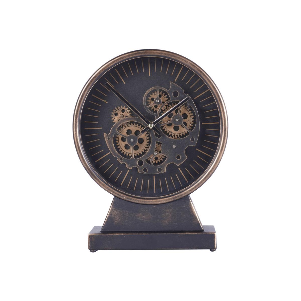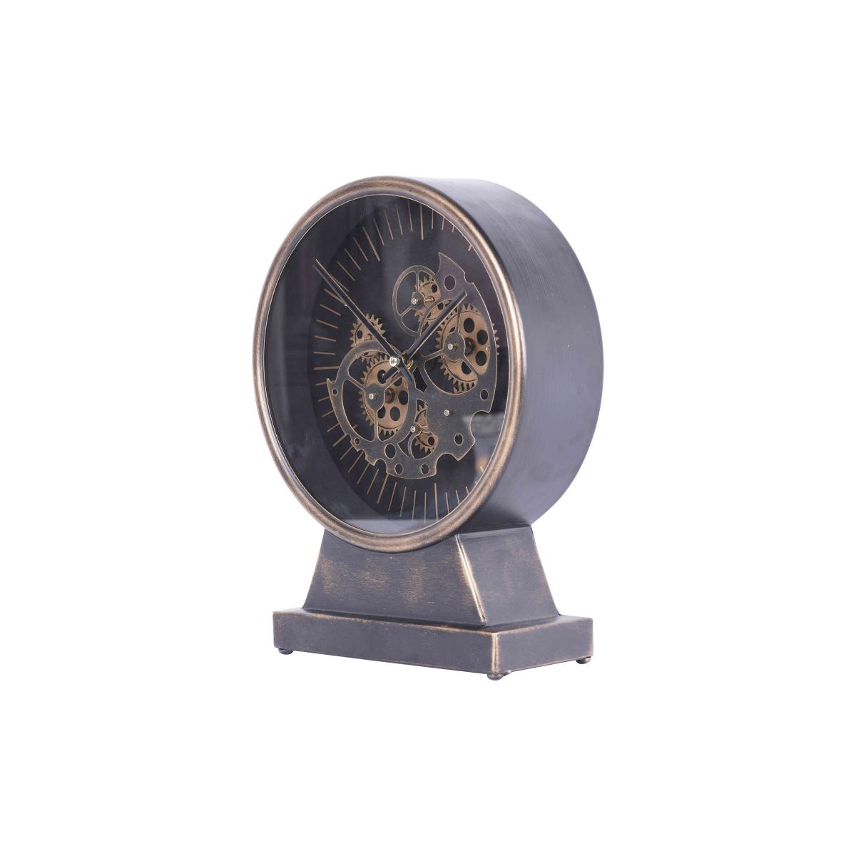 The graceful Palladium mantel clock complements any decor. Crafted from high-quality palladium, this stunning timepiece features a clear, easy-to-read dial and a sleek finish. Why you'll love it This clock goes beyond timekeeping. It showcases five mesmerising cogs in motion. Features delicate tick marks for added opulence. A chic addition to tables, desks and consoles. Available in black and nickel or black and gold. What you need to know Made of metal. Requires 3 x AA batteries, not included. Batteries should be changed twice a year. For indoor use only. To clean, simply dust with a soft cloth. Dimensions Height: 33 cm (13 in). Width: 25 cm (10 in). Depth: 10 cm (4 in).