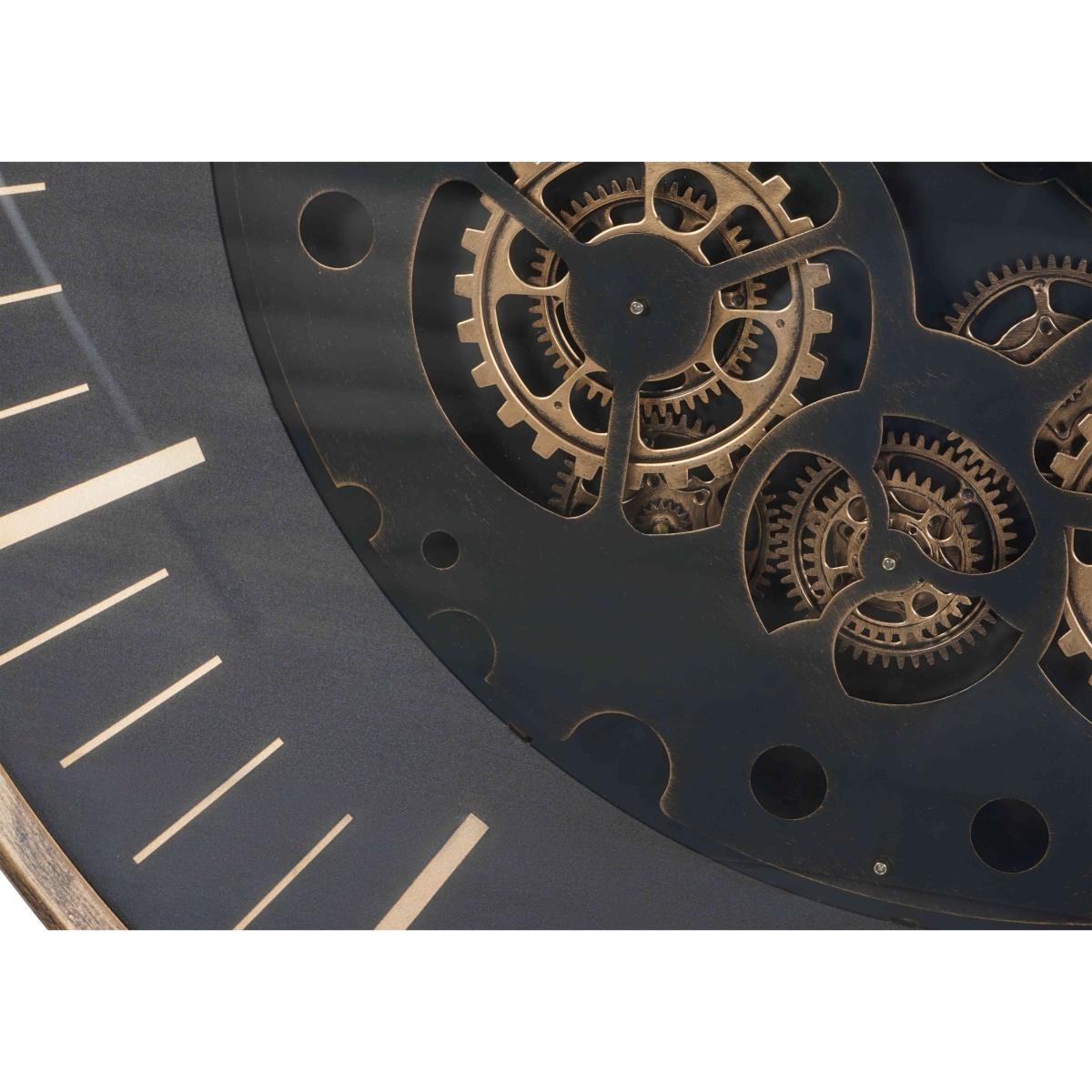 Dramatic allure meets minimalist charm in the small Palladium wall clock. Perfect for any interior style, its innovative design exudes an industrial-inspired aesthetic. Why you'll love it An undeniably eye-catching timepiece. Commands attention wherever it's placed. Striking black backdrop complemented by golden accents. Its intricate moving cogs add a dynamic element. Lends sophistication to any space. Also available in a larger size. What you need to know Made of metal. Requires 3 x AA batteries, not included. Batteries should be changed twice a year. For indoor use only. To clean, simply dust with a soft cloth. Dimensions Height: 80 cm (32 in). Width: 80 cm (32 in). Depth: 8 cm (4 in). Item code: PALLWCLKSML-001