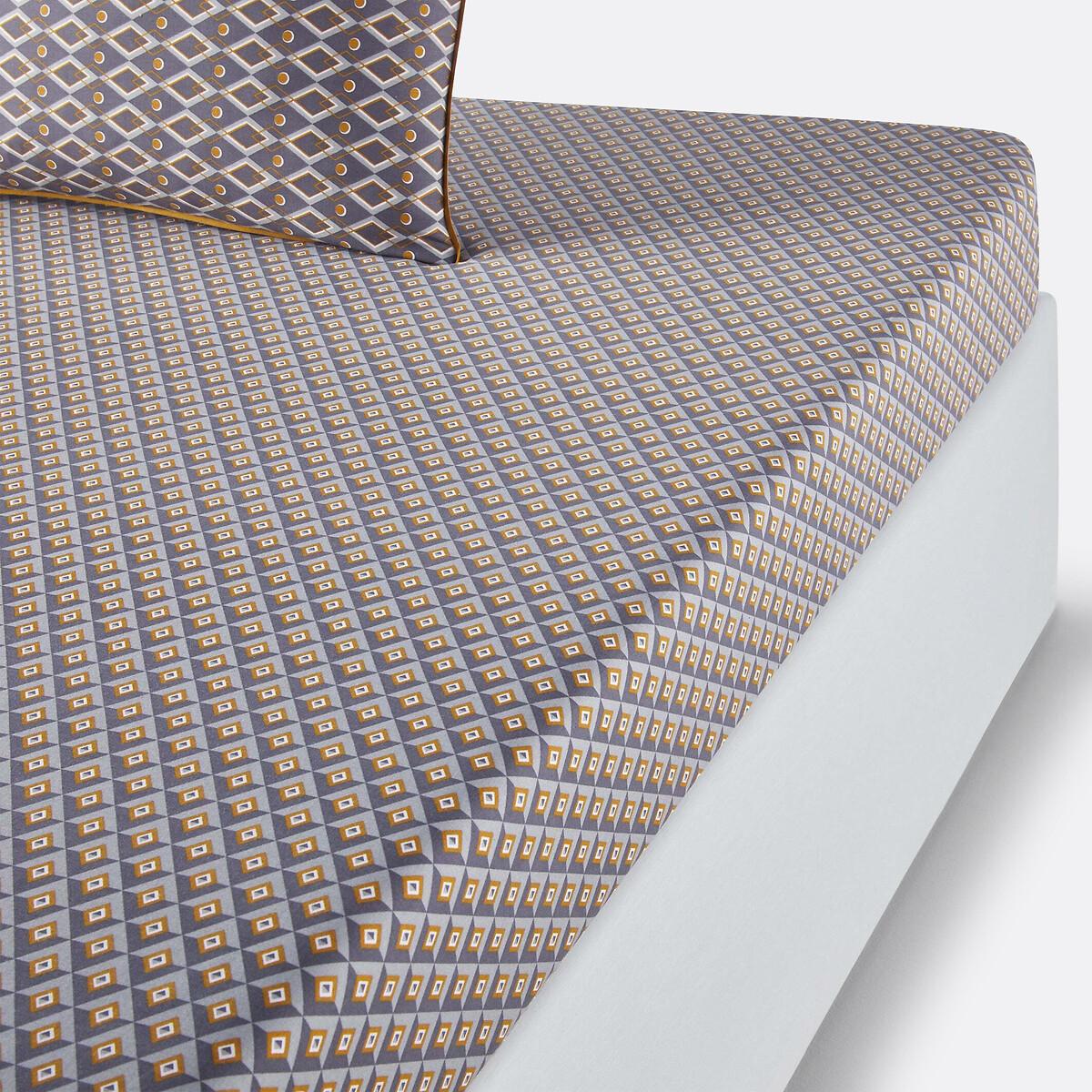 . Featuring a graphic print inspired by palazzo-style flooring, this smart fitted sheet will add an elegant touch to your bedroom theme. Cotton is part of our daily lives. We love it for its suppleness and softness. Easy Care, it is ideal for the beds of young and old alike!Product Details • 100% cotton • 144 thread count • Mini print • For mattress height 25cm. Care Advice • Machine washable at 60°C • By washing your laundry at 40°C instead of 60°C, you limit energy consumption. Dimensions • 90 x 190cm: Single • 140 x 190cm: King • 160 x 200cm: King • 180 x 200cm: King • OEKO-TEX® Standard 100. Standard 100 certification by OEKO-TEX® tests textile products for harmful substances via an independent, international label.