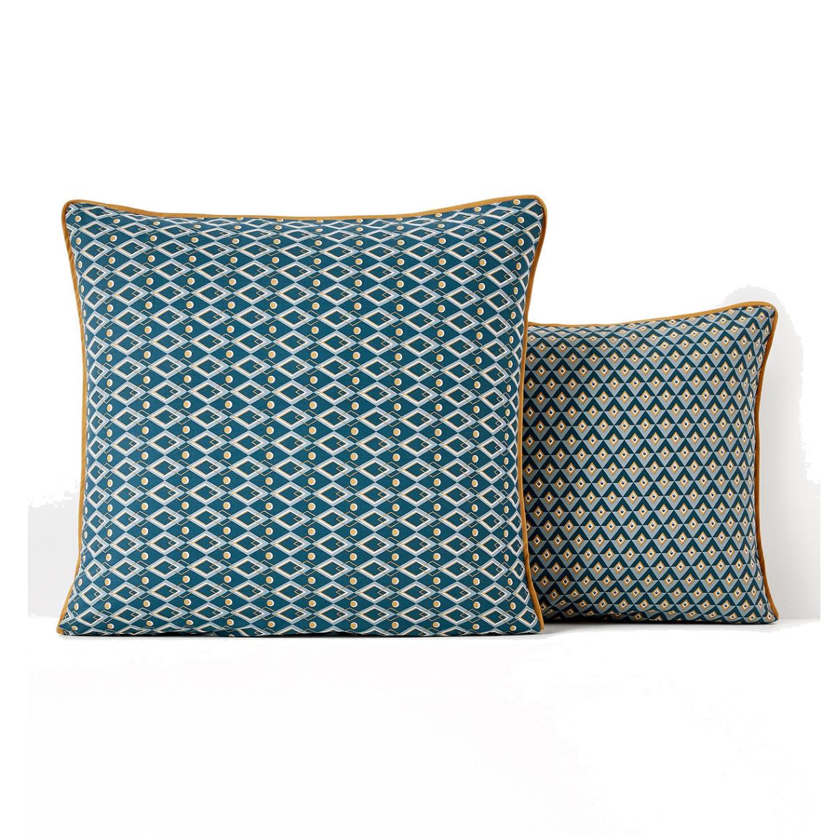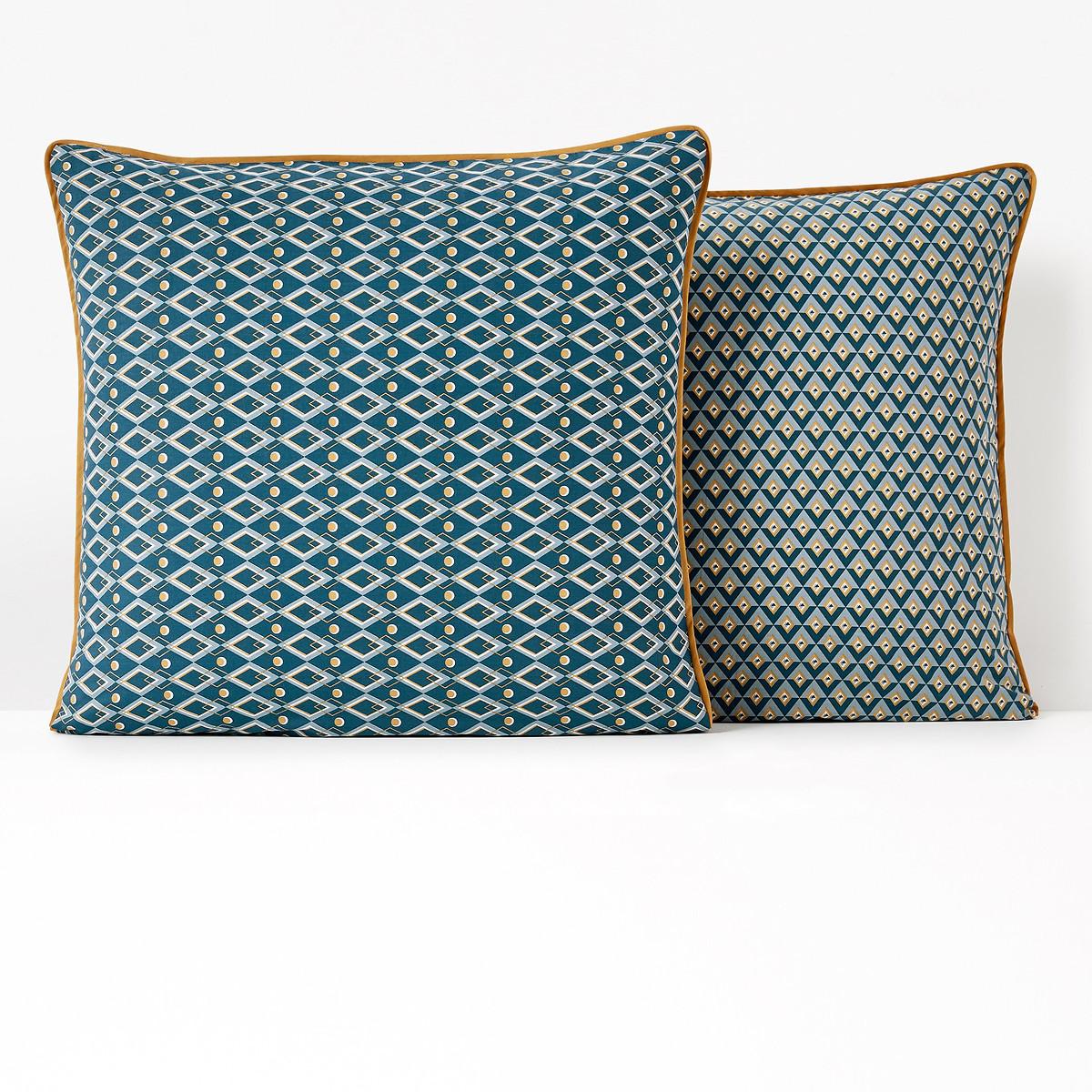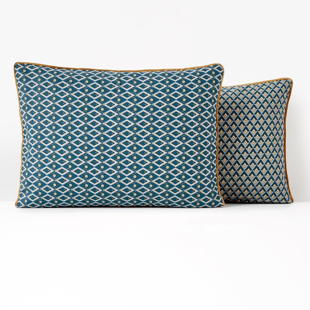 The Pallazzo patterned pillowcase. Inspired by palazzo-style flooring, this pure cotton pillowcase is printed on both sides with diamond prints in deep jewel tones, set against a mustard-coloured trim. Product Details • 100% cotton • 144 thread count • Sack shape • Front: large pattern, back: micro motifs • Contrasting taped edging. Care Advice • Machine washable at 60°C • By washing your laundry at 40°C instead of 60°C, you limit energy consumption. Sizes • 50 x 70cm: Rectangular pillowcase • 63 x 63cm: Square pillowcase • OEKO-TEX® Standard 100. Standard 100 certification by OEKO-TEX® tests textile products for harmful substances via an independent, international label.
