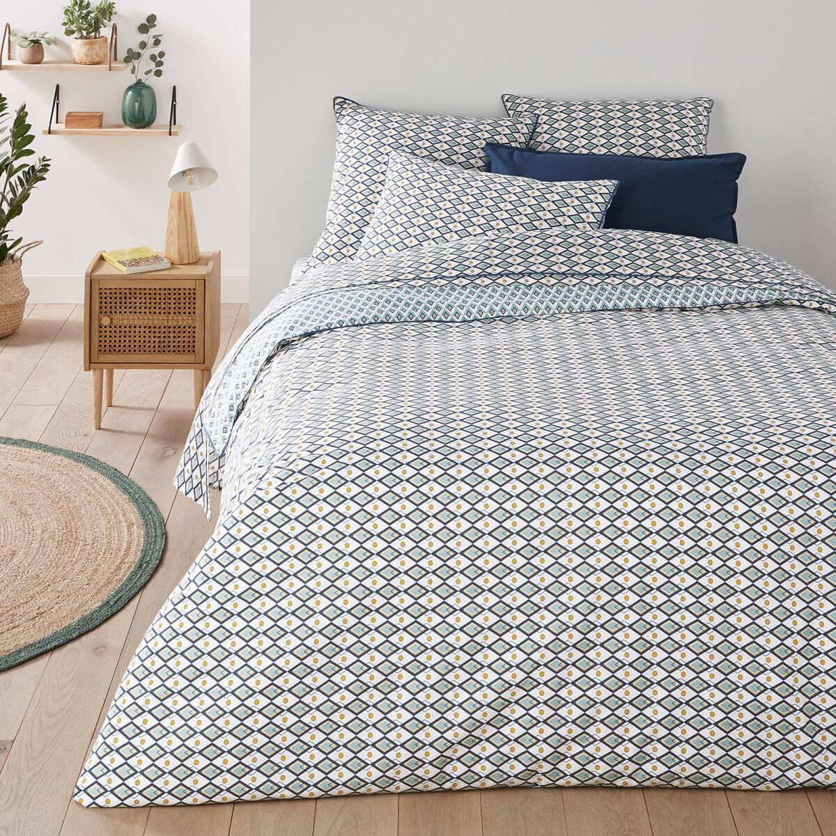 The Pallazzo Pastel bedding has rich geometric prints in different patterns and harmony of pastel tones, highlighted with a contrasting bias. Designed by La Redoute Interiors.