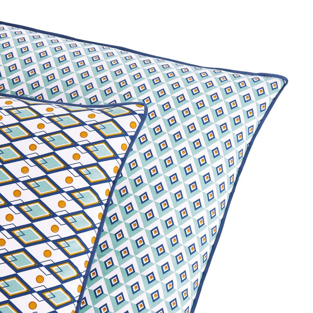 The Pallazzo Pastel bedding has rich geometric prints in different patterns and harmony of pastel tones, highlighted with a contrasting bias.