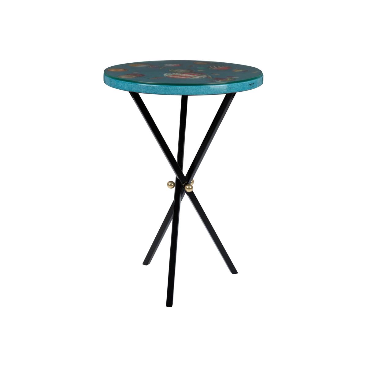Add a touch of whimsical charm to your home with this Palloni table from Fornasetti. Beautifully crafted from wood, the blue table top depicts a whimsical hot air balloon motif. Finished with black coloured metal tripod legs, it’s painted and lacquered by hand making it a truly unique piece of art for your home.