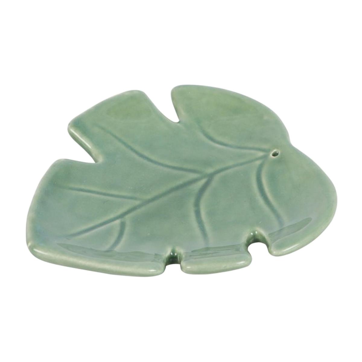 Calm your senses with this ceramic incense holder shaped like a beautiful palm leaf. Finished in a calming green, this ceramic holder will look chic on a side table or nightstand while catching falling ash.