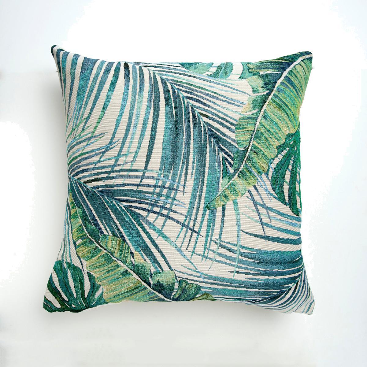 Palm Leaf Tapestry Teal Cushion Cover Blue, Green and White