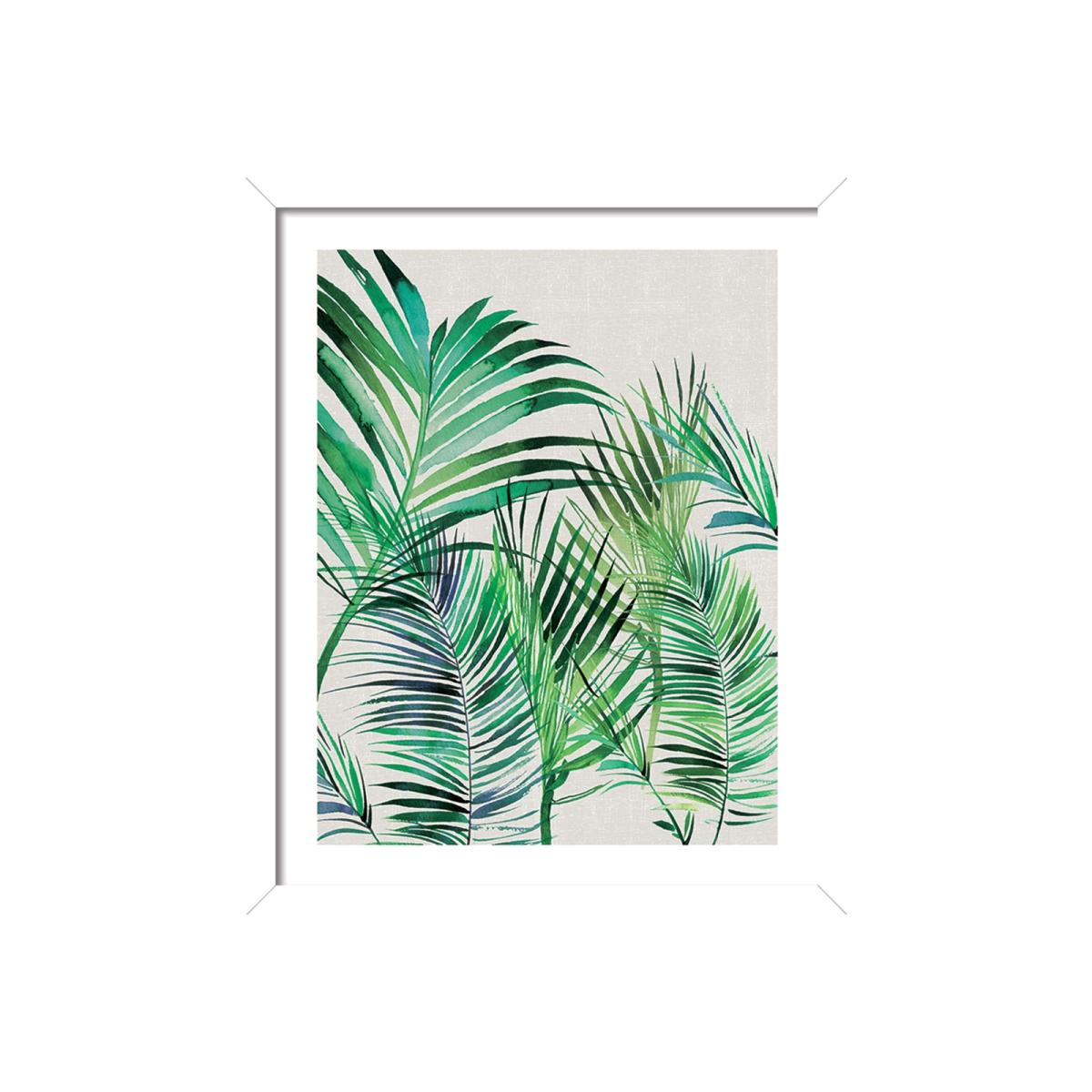 Design. If houseplants and greenery have become a much-loved addition to your home, the Palm Leaves Framed Print is certain to be the next. The soft, white frame compliments the bold shades of green displayed on the print of the palm leaves, complimenting each other for an eye-catching adornment to your wall.