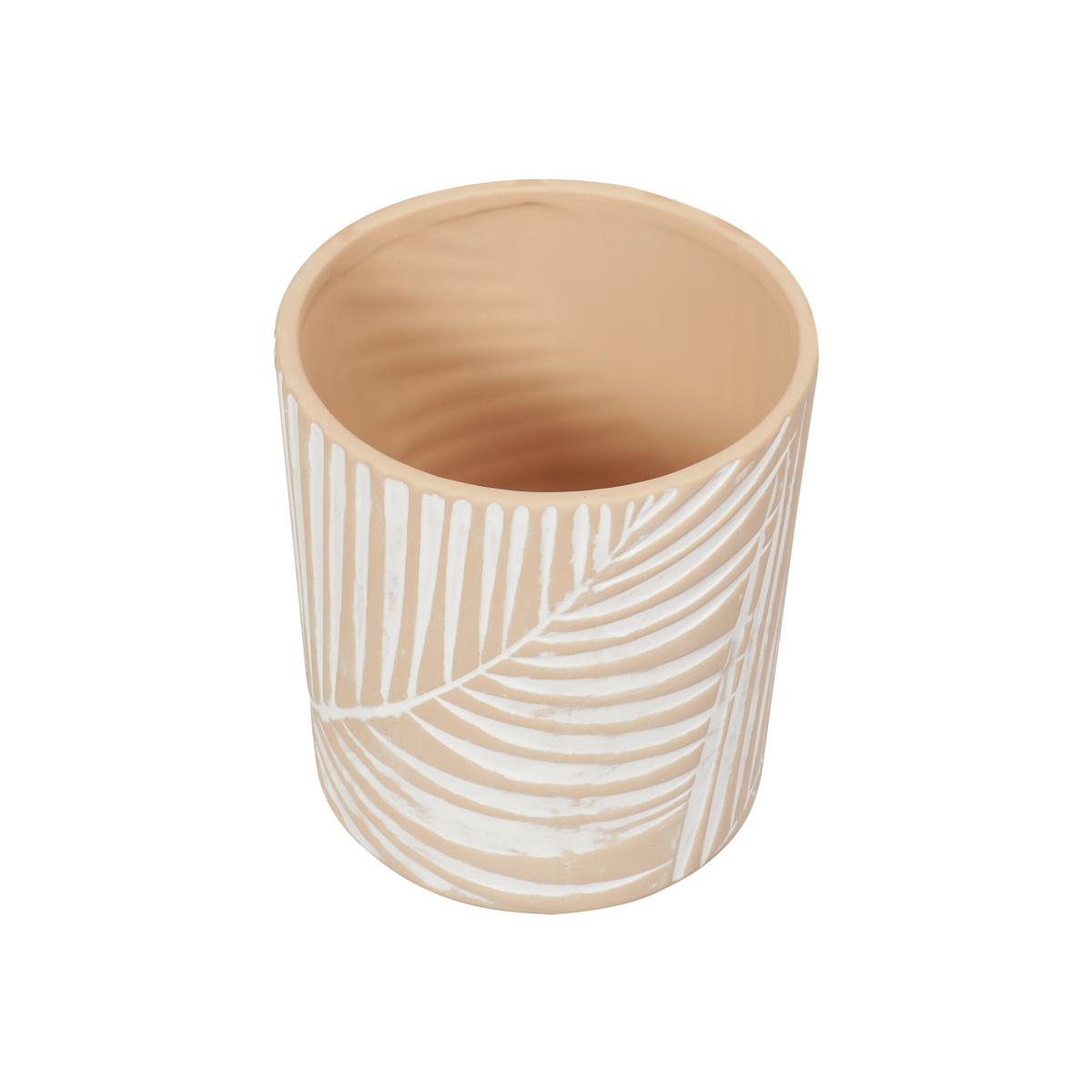I love the Palm Planter for its sleek, minimal design with a touch of natural aesthetic that works well in both modern and boho interiors. Its neutral hue and subtle palm pattern make it versatile, complementing greenery like palms, succulents, or ferns without overwhelming the space. This pot is ideal for creating fresh, relaxed displays on consoles, bedside tables, or window sills. For best styling, pair it with textured plant vessels or place it amidst woven baskets and wooden accents to enhance its tropical vibe. Additionally, choosing plants with structural or sculptural qualities will allow the pattern of the pot to stand out, making it both functional and decorative.