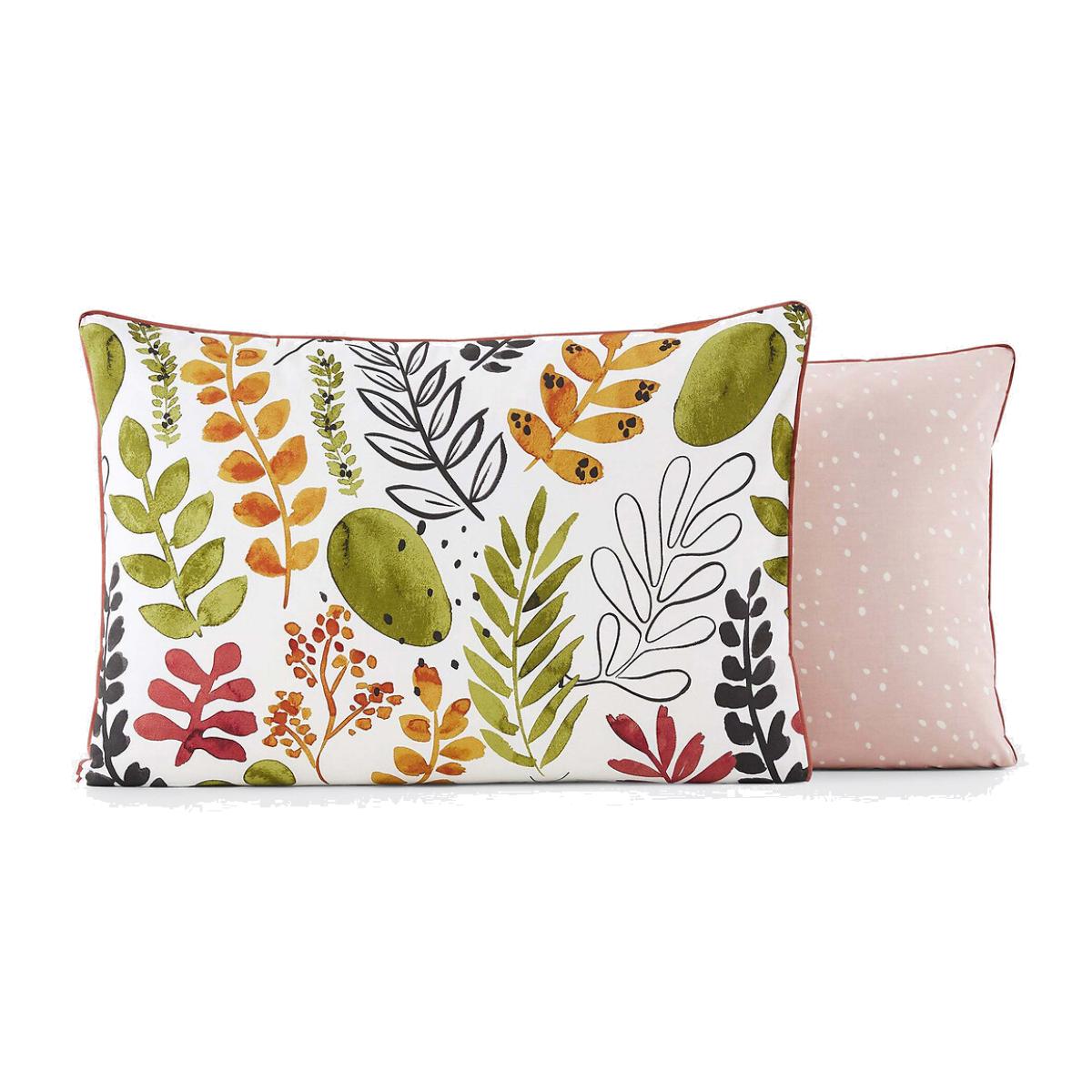 The Palm Spring pure cotton percale pillowcase. A change of scenery is guaranteed with our Palm Spring bed linen set, which revisits the floral prints of yesteryear in a range of natural tones. The cotton percale offers a pleasant feeling of freshness and lightness. Its tight weave makes it particularly soft for premium comfort. A matte and smooth material that will soften over time. Product Details • 100% cotton • Percale • 200 thread count: The higher the thread count, the higher the quality of the weave • Sack shape • Contrasting taped edging • Front with leaf print, back with small patterns. Care Advice • Machine washable at 60°C • By washing your laundry at 40°C instead of 60°C, you limit energy consumption. Sizes • 50 x 70cm: Rectangular pillowcase • 63 x 63cm: Square pillowcase • OEKO-TEX® Standard 100. Standard 100 certification by OEKO-TEX® tests textile products for harmful substances via an independent, international label.