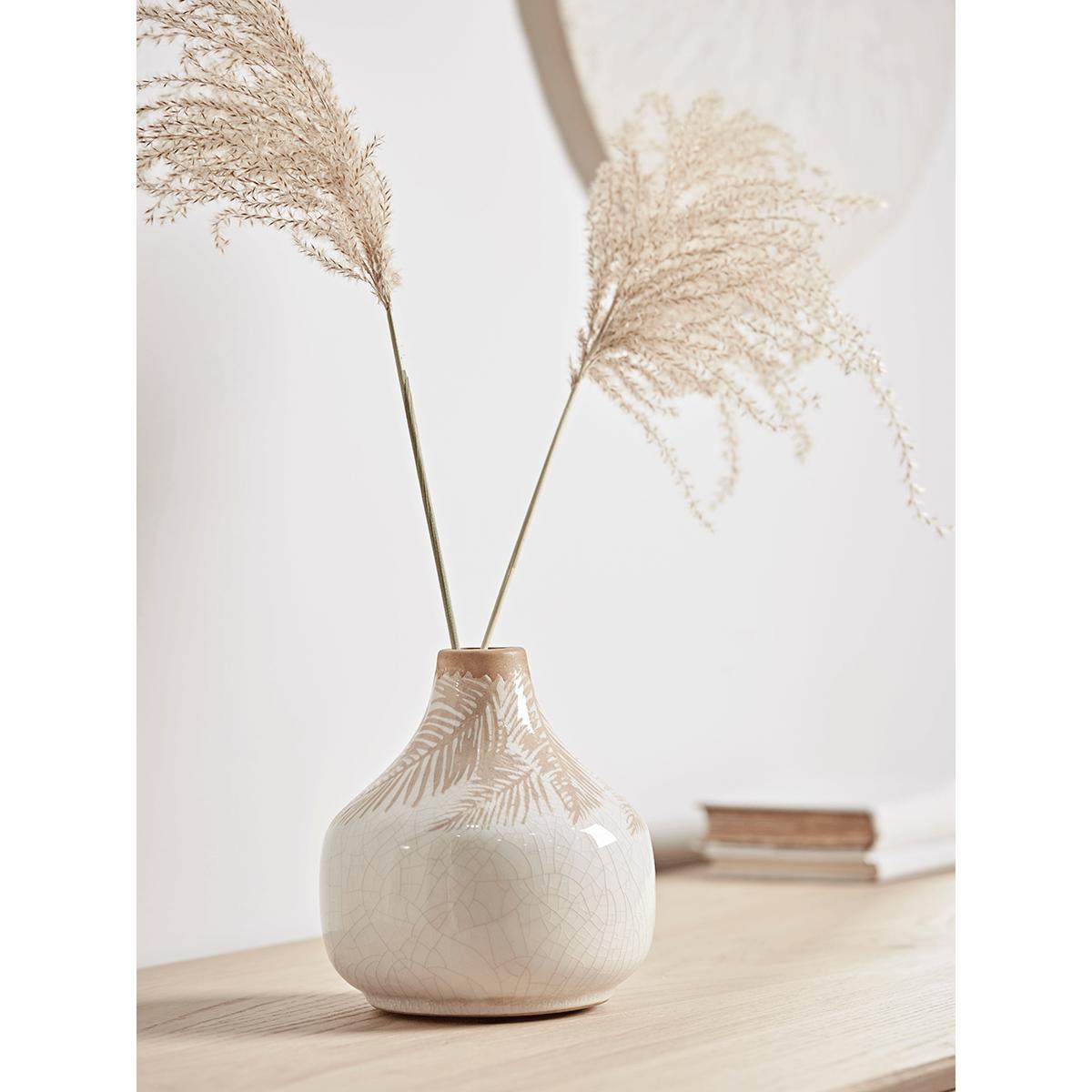 I love the simplicity and organic feel of the palm vase; its understated design makes it versatile for many interiors. It works particularly well in minimalistic or Scandinavian-inspired spaces, where its neutral tones and subtle texture can be appreciated without overwhelming the overall look. For practical styling, I recommend pairing it with dried grasses or single-stem flowers to highlight its natural appeal. Placing it on a light wooden or neutral-coloured surface allows its shape and craftsmanship to truly stand out, making it a great choice as a focal point or complementary piece on a sideboard, shelf, or console table.