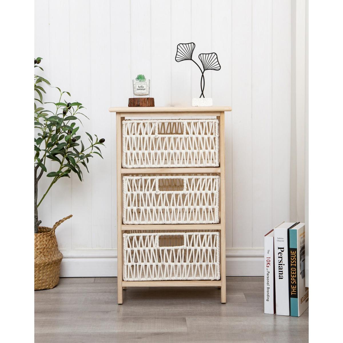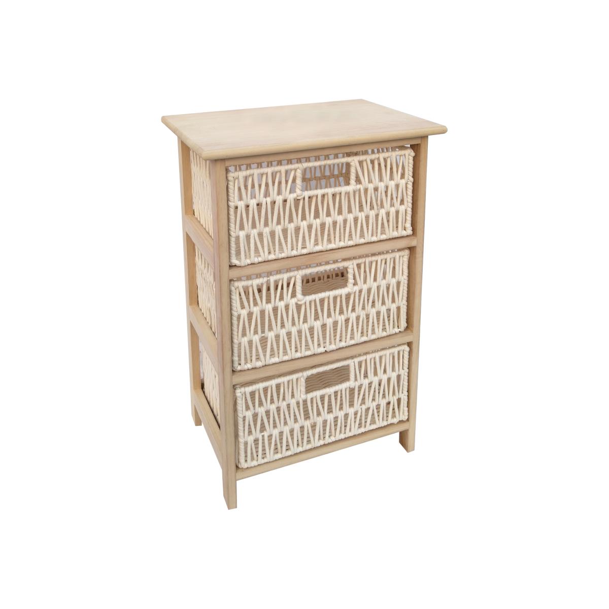 The Palma 3-Drawer Cabinet is a great storage solution for your space. This attractive cabinet has a light and fresh design that keeps your space airy and features a durable wooden frame for a natural feel. The drawers are inspired by rattan and feature a see-through element so you can see what's in each drawer before you open them. It's a great storage solution, allowing you to store all sorts in style and is ideal for almost any room.