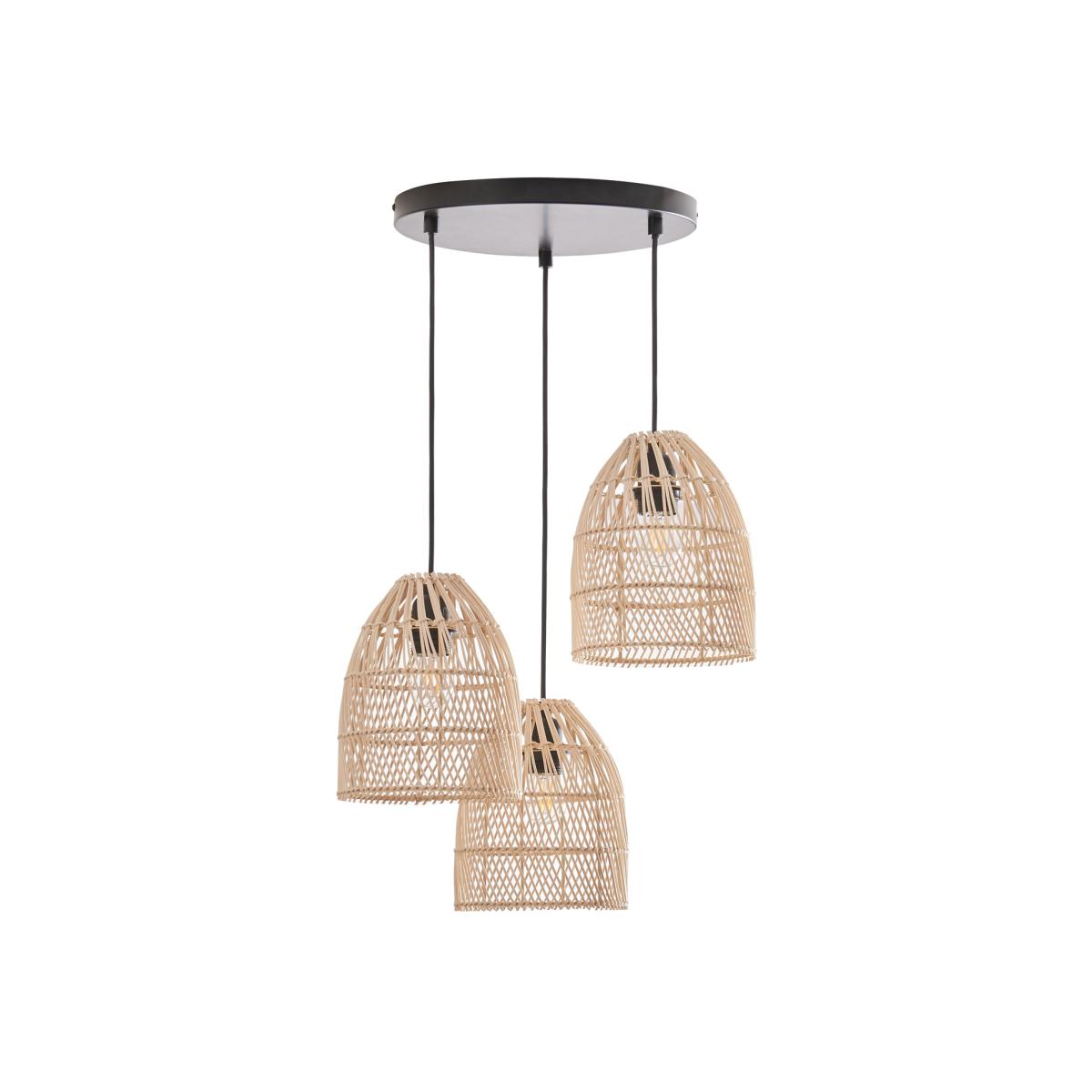 This Palma 3 Light Ceiling Fitting is the perfect way to accent any kitchen, dining room or hallway. The rattan shades and black metal finish is a stylish and unique twist on a classic design. The three-bulb fittings can provide an ambience above a dining room table or kitchen island, allowing light to flood through the cage pendant design. This ceiling fitting is a stylish and rustic piece, perfect for your home.