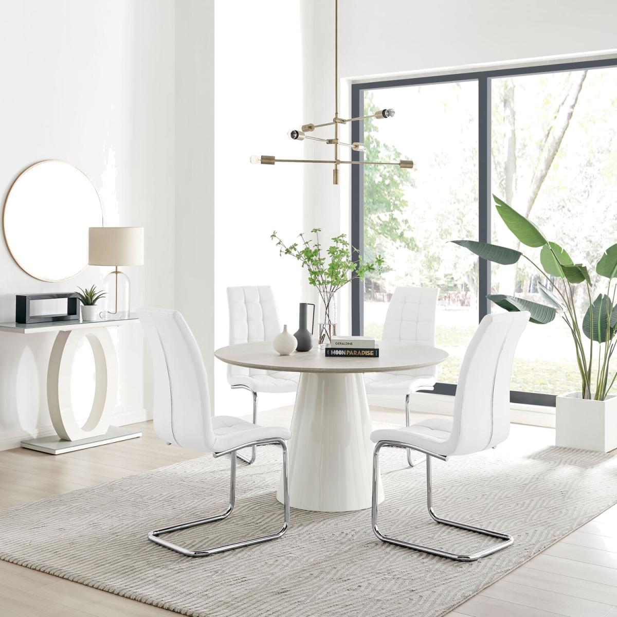 Our stunning Palma table with the stone-effect finish is a round dining table with a large statement tapered central pillar. It's a minimalist post-modern dream! The perfect balance of round and straight lines an uncluttered and elegant dining table solution that will be a real talking point in any modern dining room. The beige stone-effect top is very in right now, and is a firm favourite here at Furniturebox UK HQ. Elegant and modern with a touch of that classical chic style. Pair with some bold colours and metallic bursts in your chairs accessories to really make this pop, or keep it chic and simple with some understated tones. Comfortably sits 4 - 6, and is constructed from wood composite with a luxury stone-effect finish. This table is easy to keep clean, durable and will stay gorgeous for years to come. Also available in other colours and finishes. The smooth contours of the hatched pad and the single seat design combine to create a flowing feel to the Murano chair. It is shaped to offer maximum ergonomic support, whilst the deep foam cushion makes it delight to sit on. Both inviting and sumptuous, the Murano is sure to be a strong contender in your quest for the right dining chair.